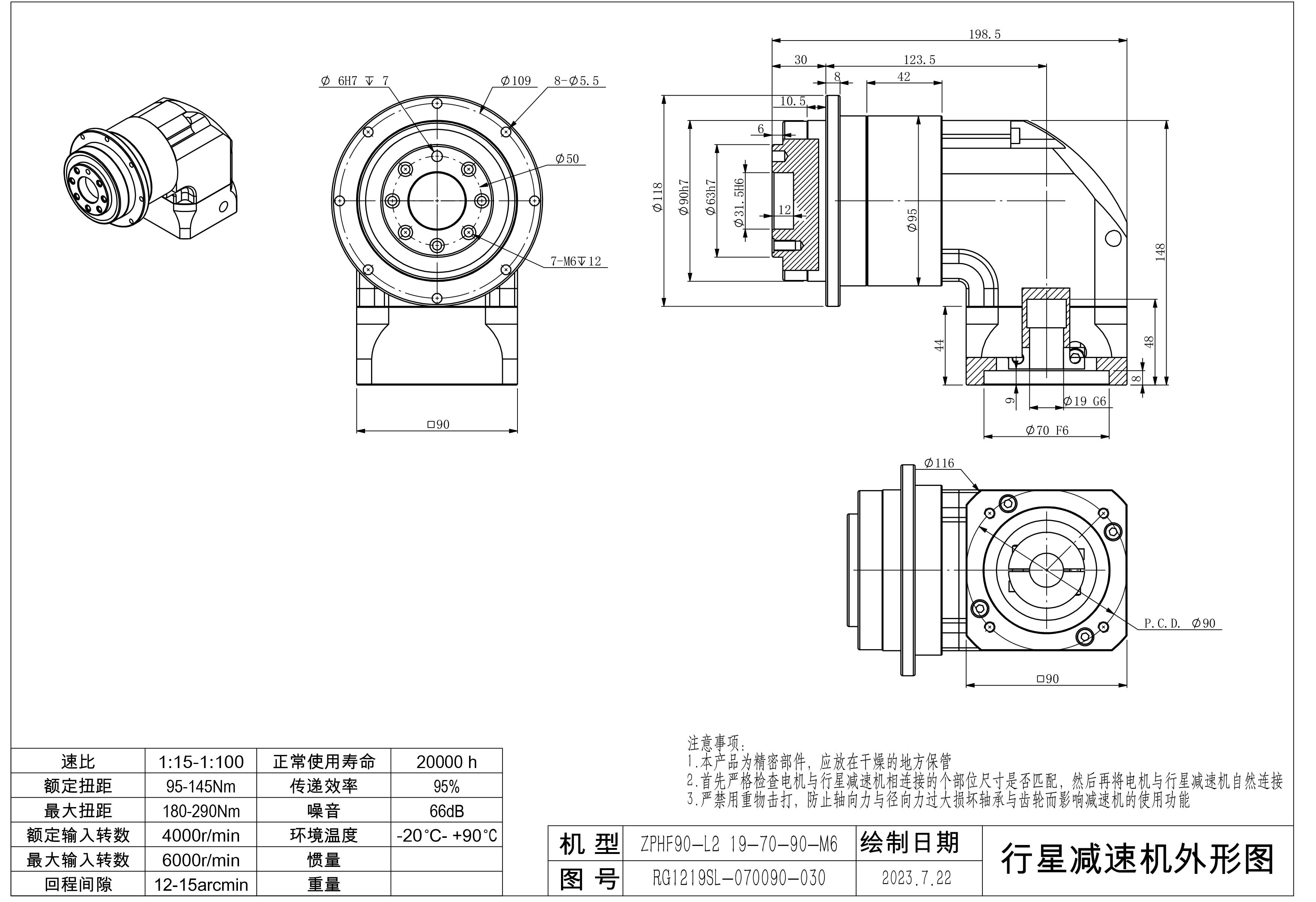 KB系列伺服行星减速机ZPHF090-L1 19-70-90-M6 ZPHF090-L2 19-70-90-M6 ZPHF090-L2 19-70-90-M6-6B