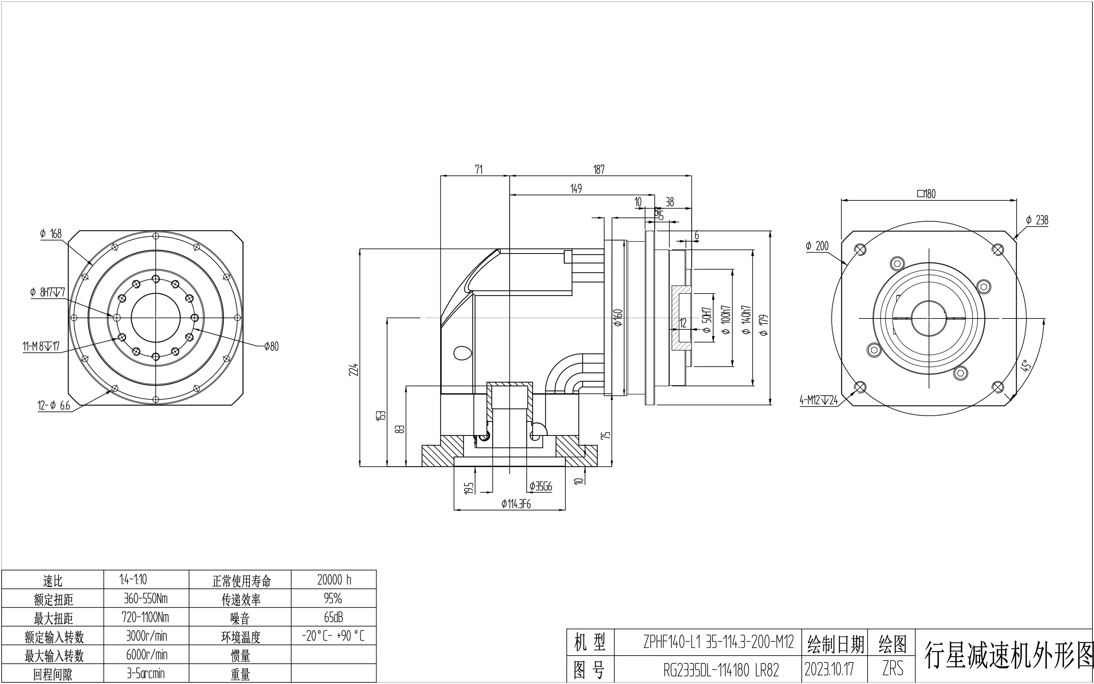 KB系列伺服行星减速机ZPHF140-L2 22-110-145-M8 ZPHF140-L1 35-114.3-200-M12 ZPHF140-L2 35-114.3-200-M12 ZPHF140-L1 38-180-215-M14