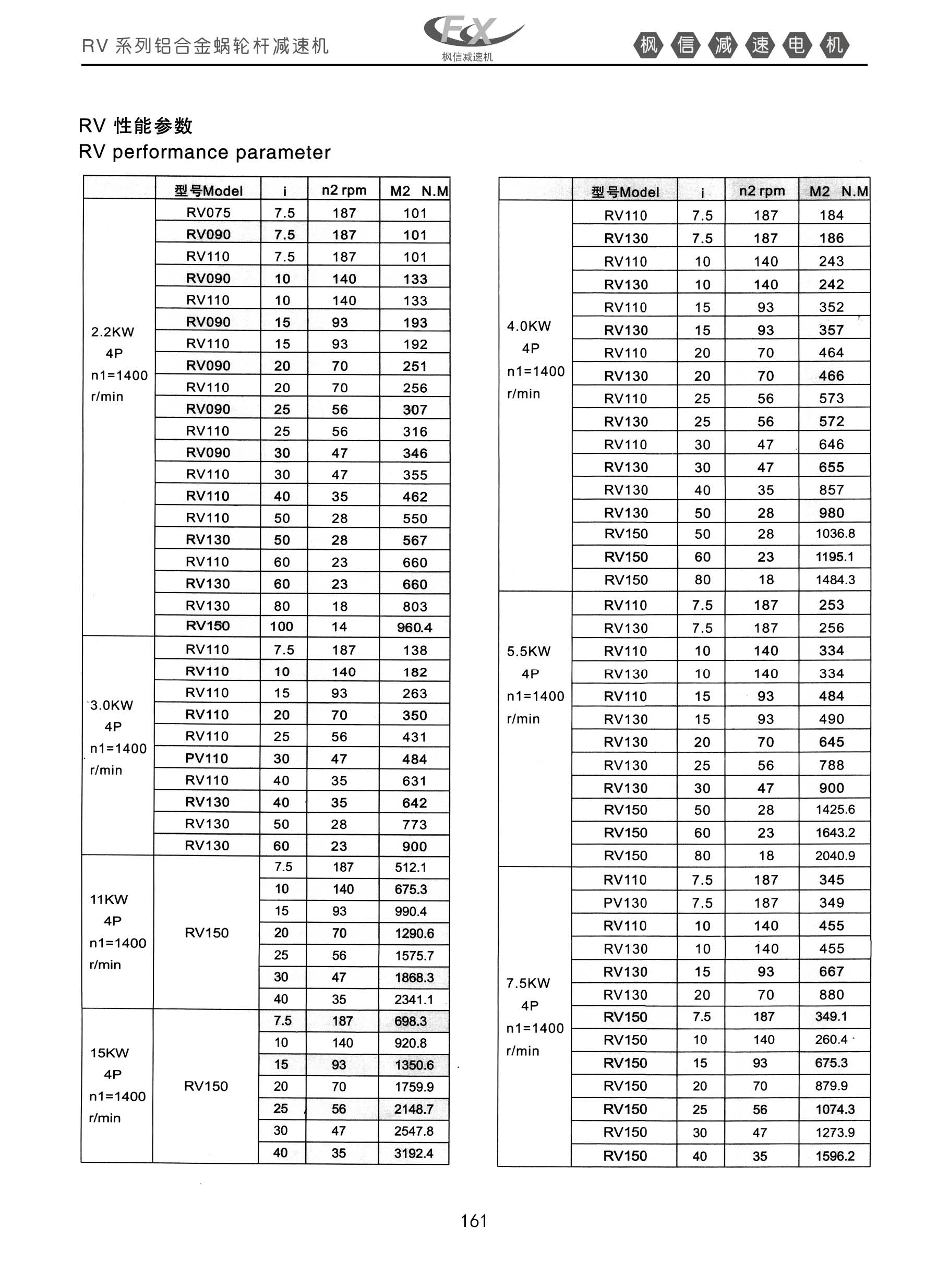 RV系列铝合金涡轮杆减速机RV性能参数