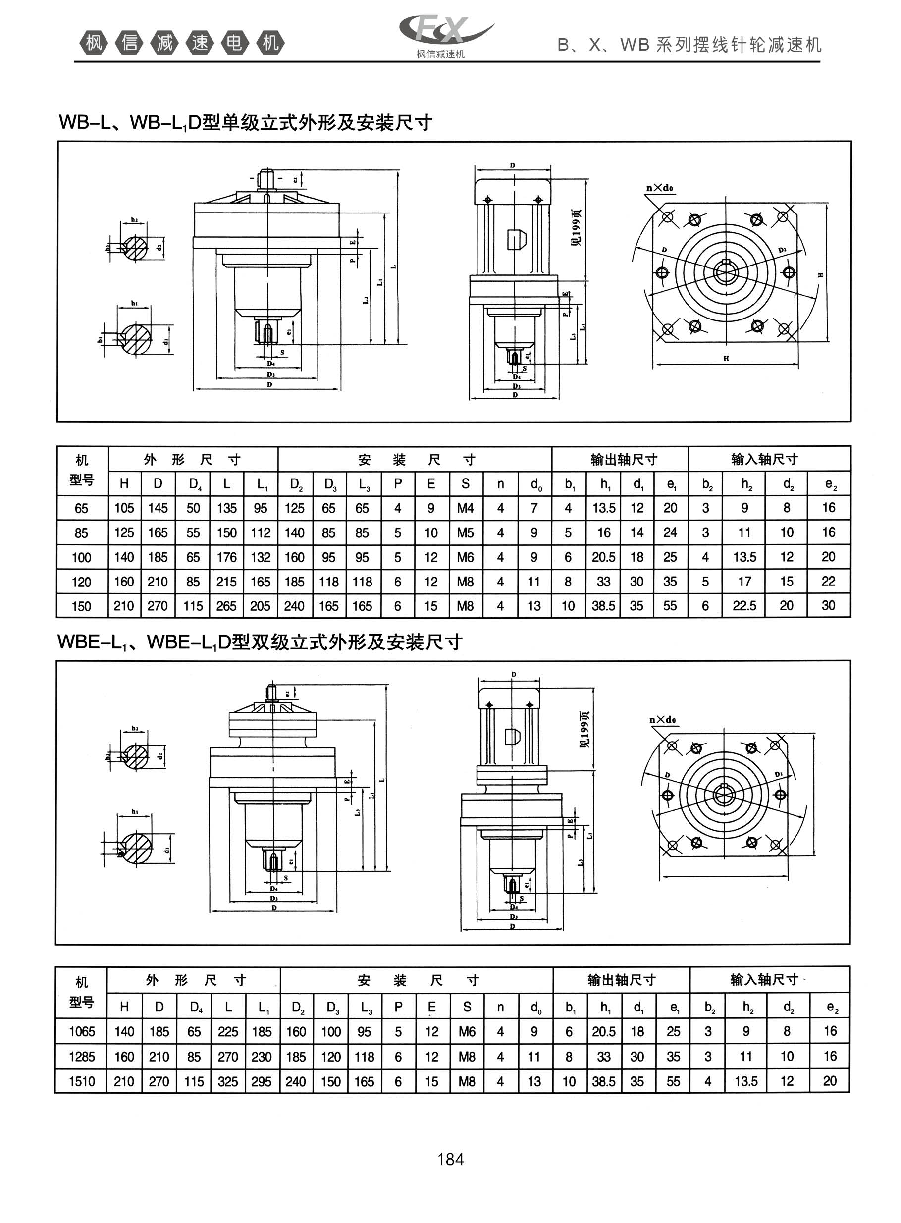 WB系列摆线针轮减速机。WB-L,WB-LD型单级立式外形及安装尺寸,WBE-L,WBE-LD型双级立式外形及安装尺寸
