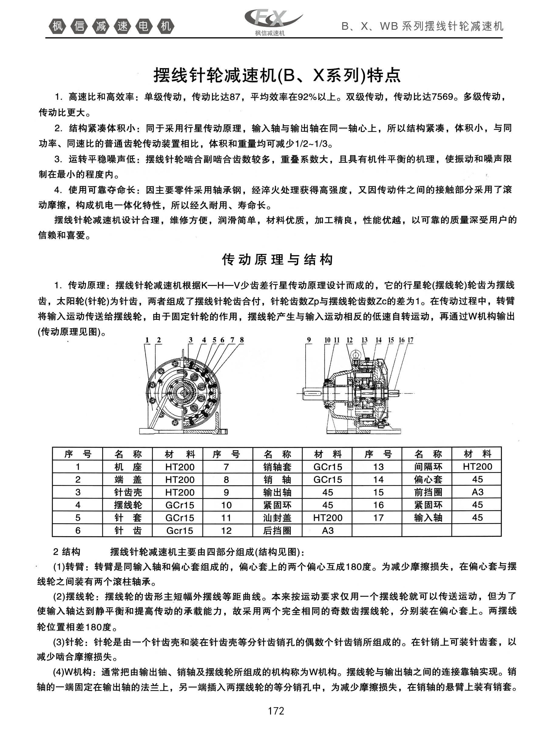 WB系列摆线针轮减速机。摆线针轮减速机【B,X,系列】特点。传动原理与结构