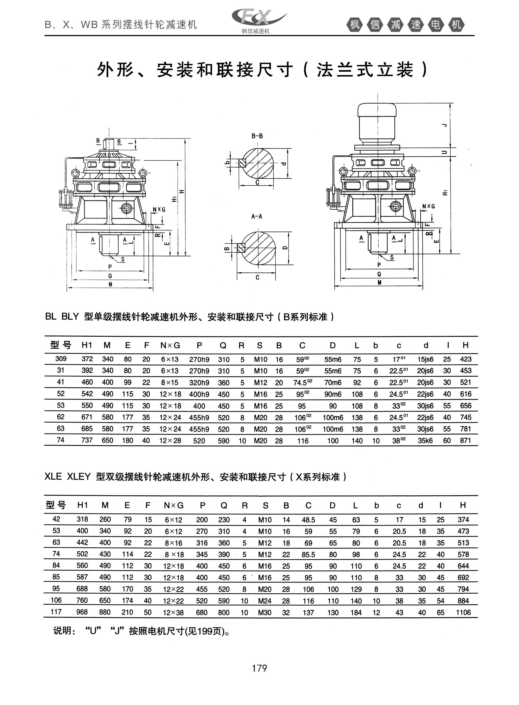 WB系列摆线针轮减速机。外形,安装和联接尺寸【法兰式立装】
