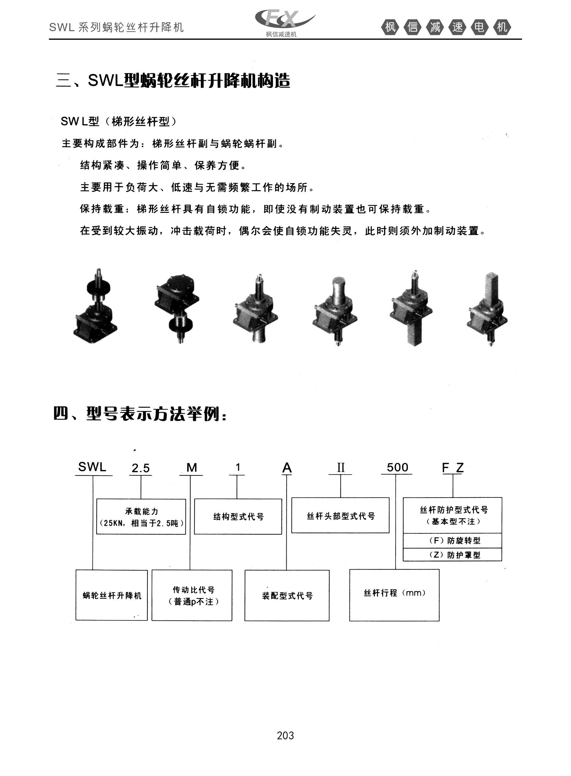 SWL系列蜗轮丝杆升降机。三,SWL型蜗轮丝杆升降机构造,SWL型【梯形丝杆型】,四,型号表示方法举例