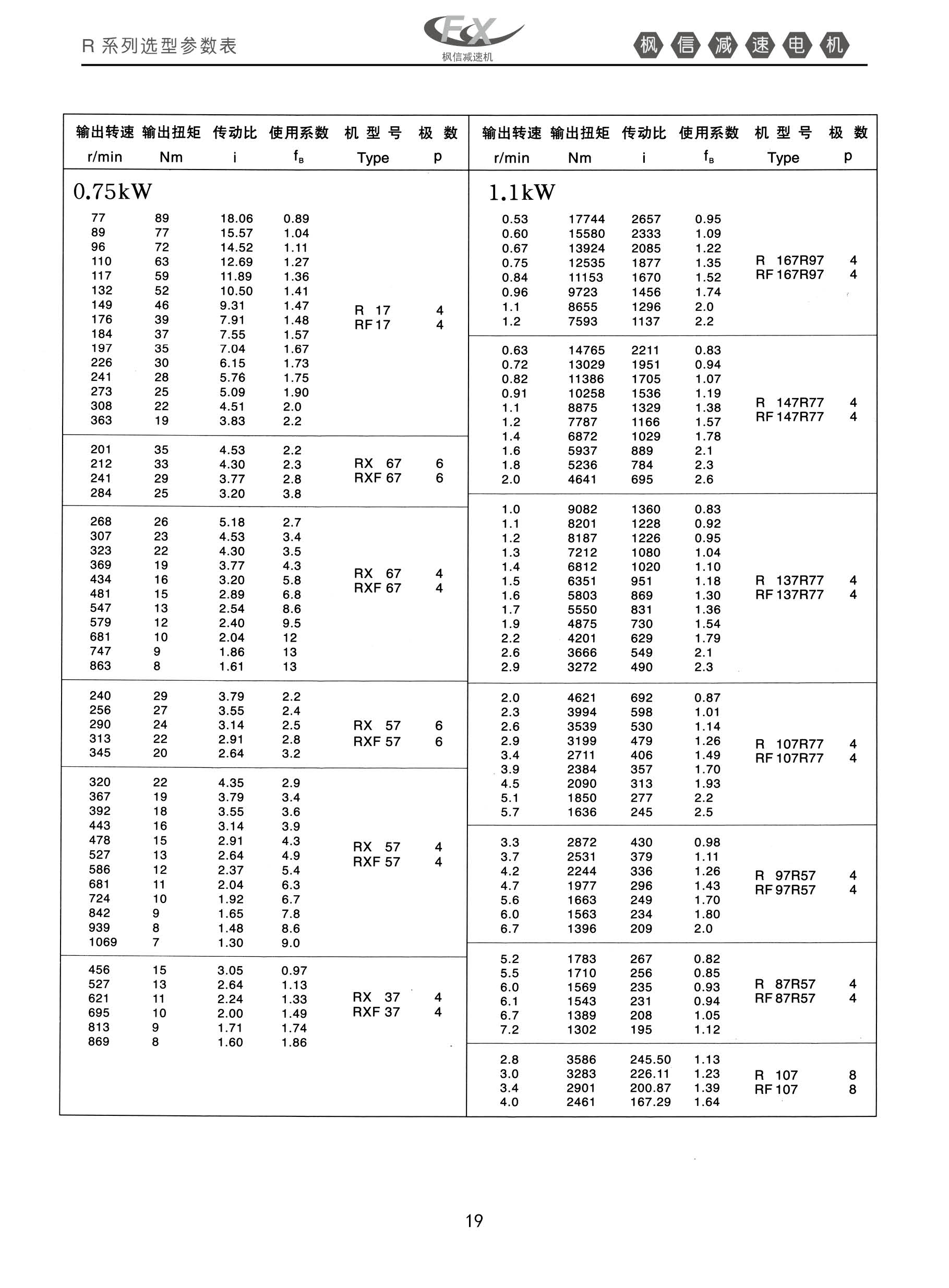 FXR系列斜齿轮硬齿面减速机0.75kw。1.1kw。选型表枫信减速机