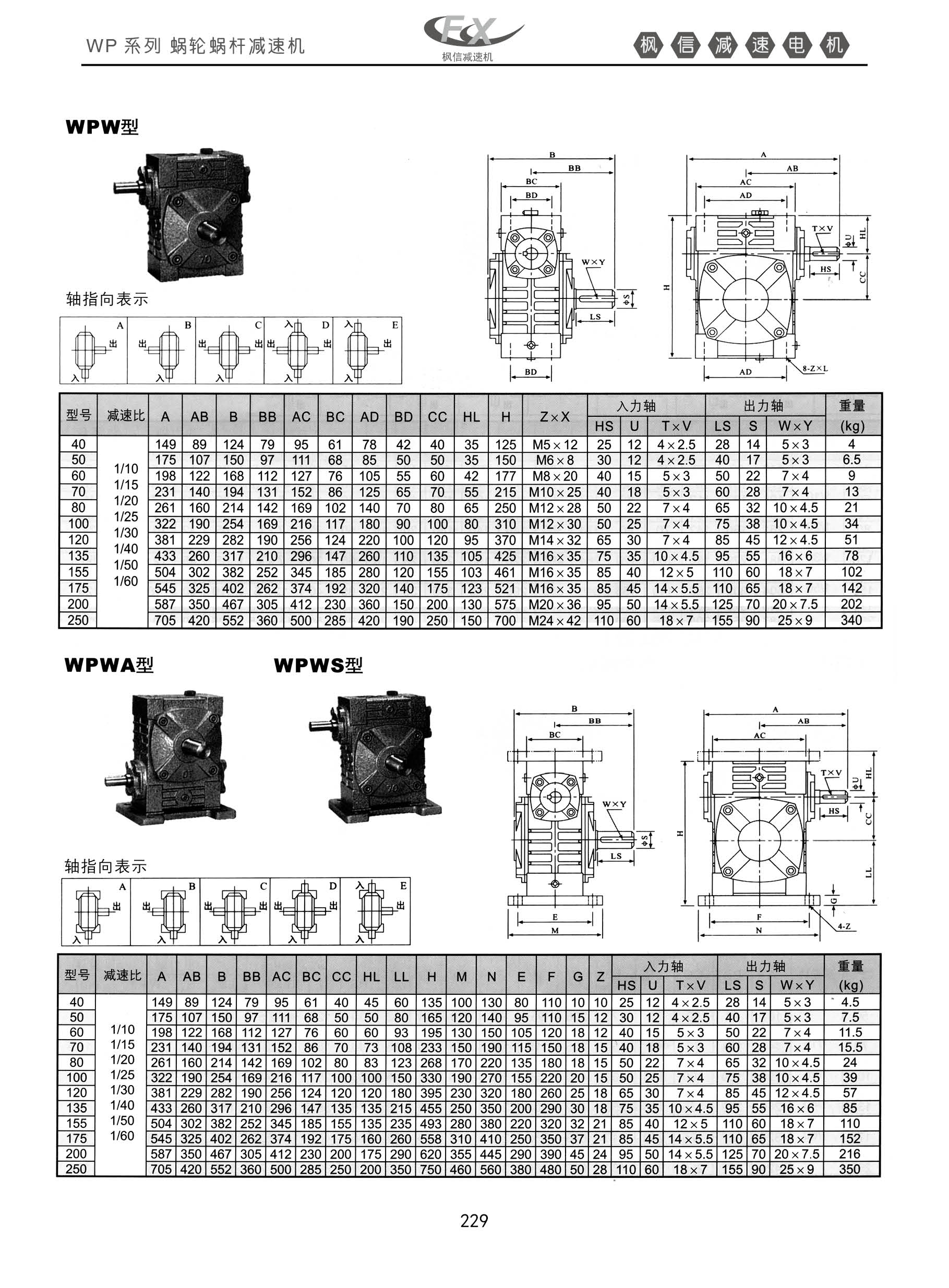WP系列蜗轮蜗杆减速机。WPW型,WPWA型,WPWS型,轴指向表示