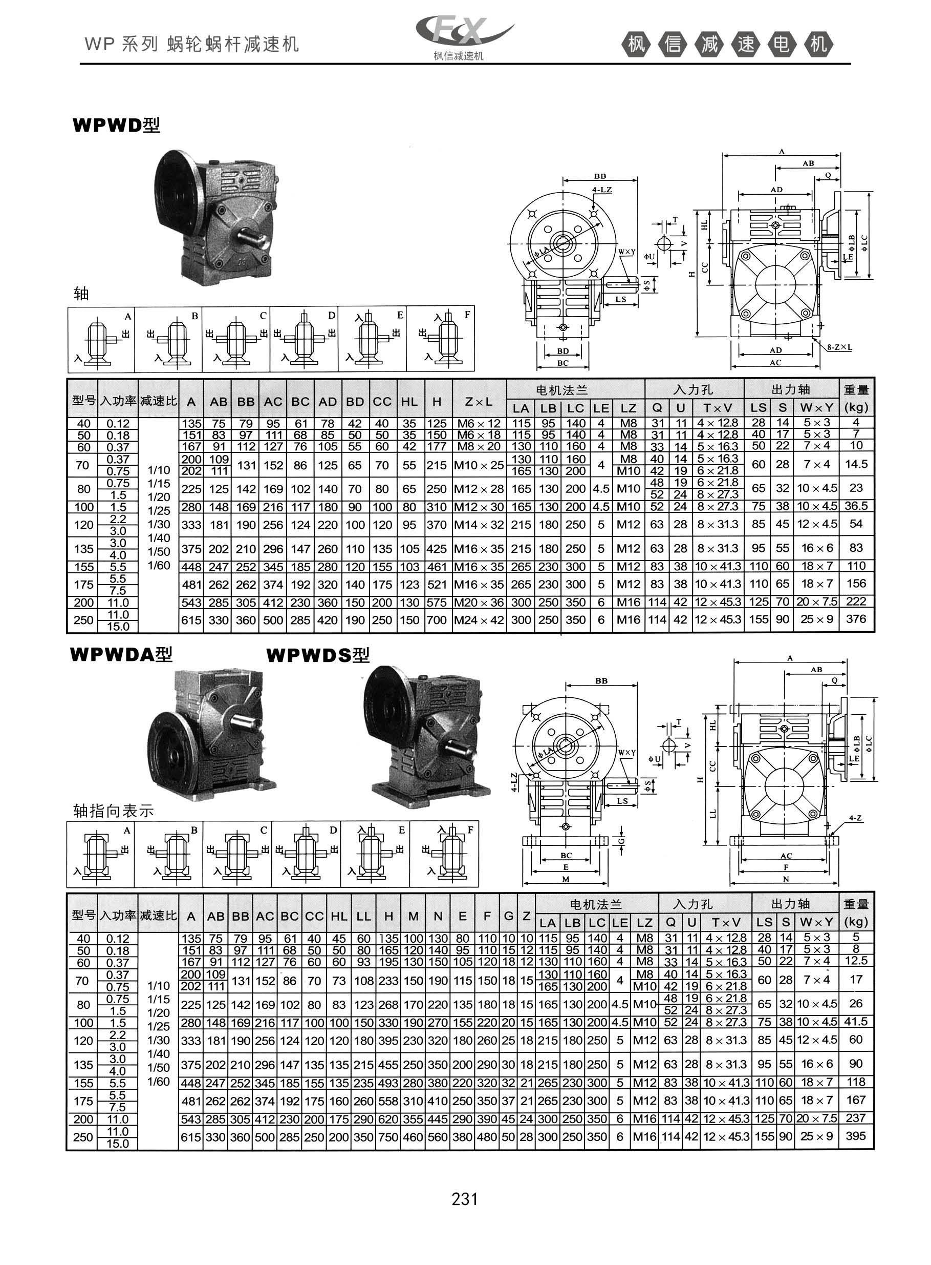WP系列蜗轮蜗杆减速机。WPWD型,WPWDA型,WPWDS型,轴指向表示