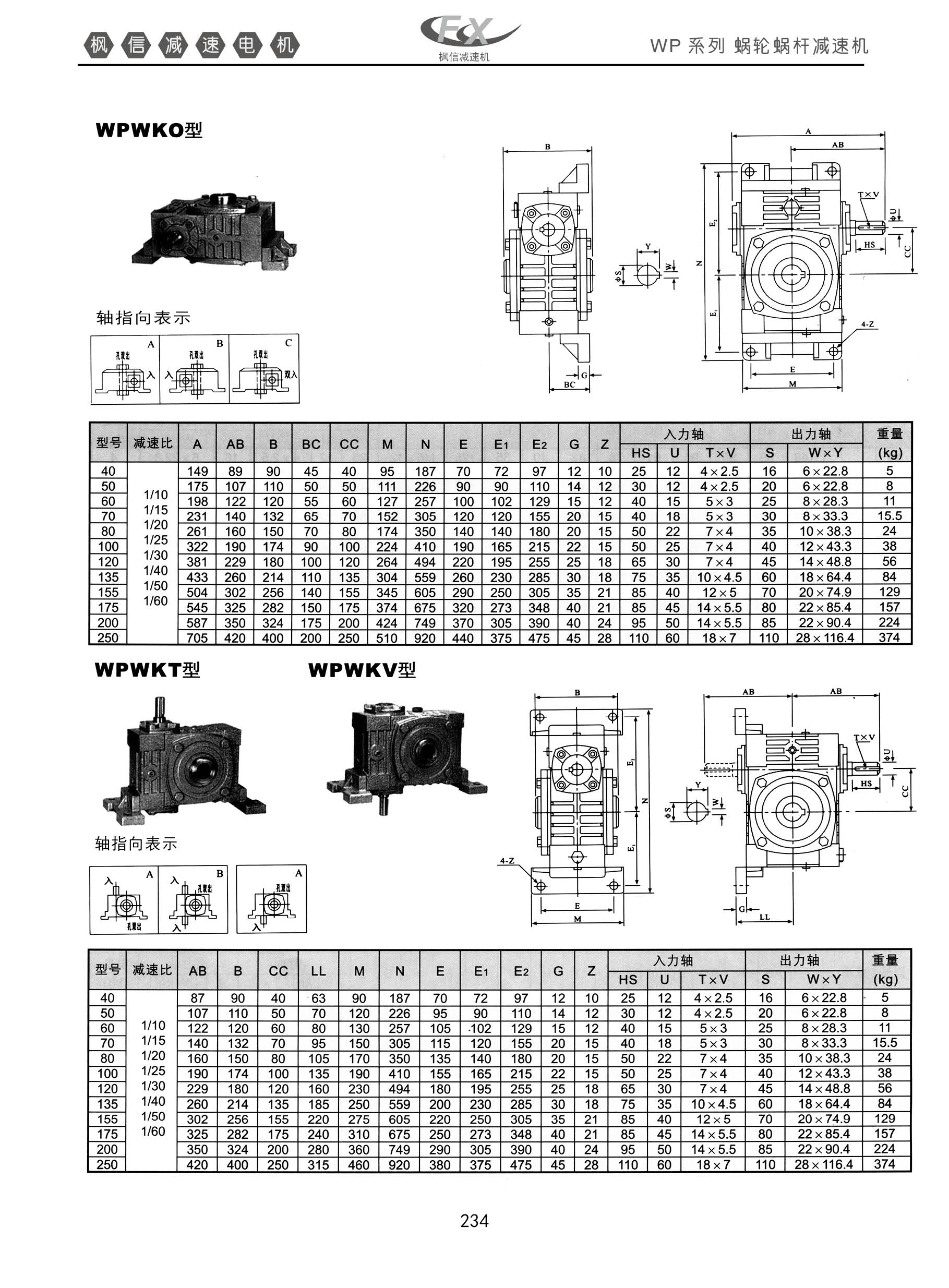 WP系列蜗轮蜗杆减速机。WPWKO型,WPWKT型,轴指向表示