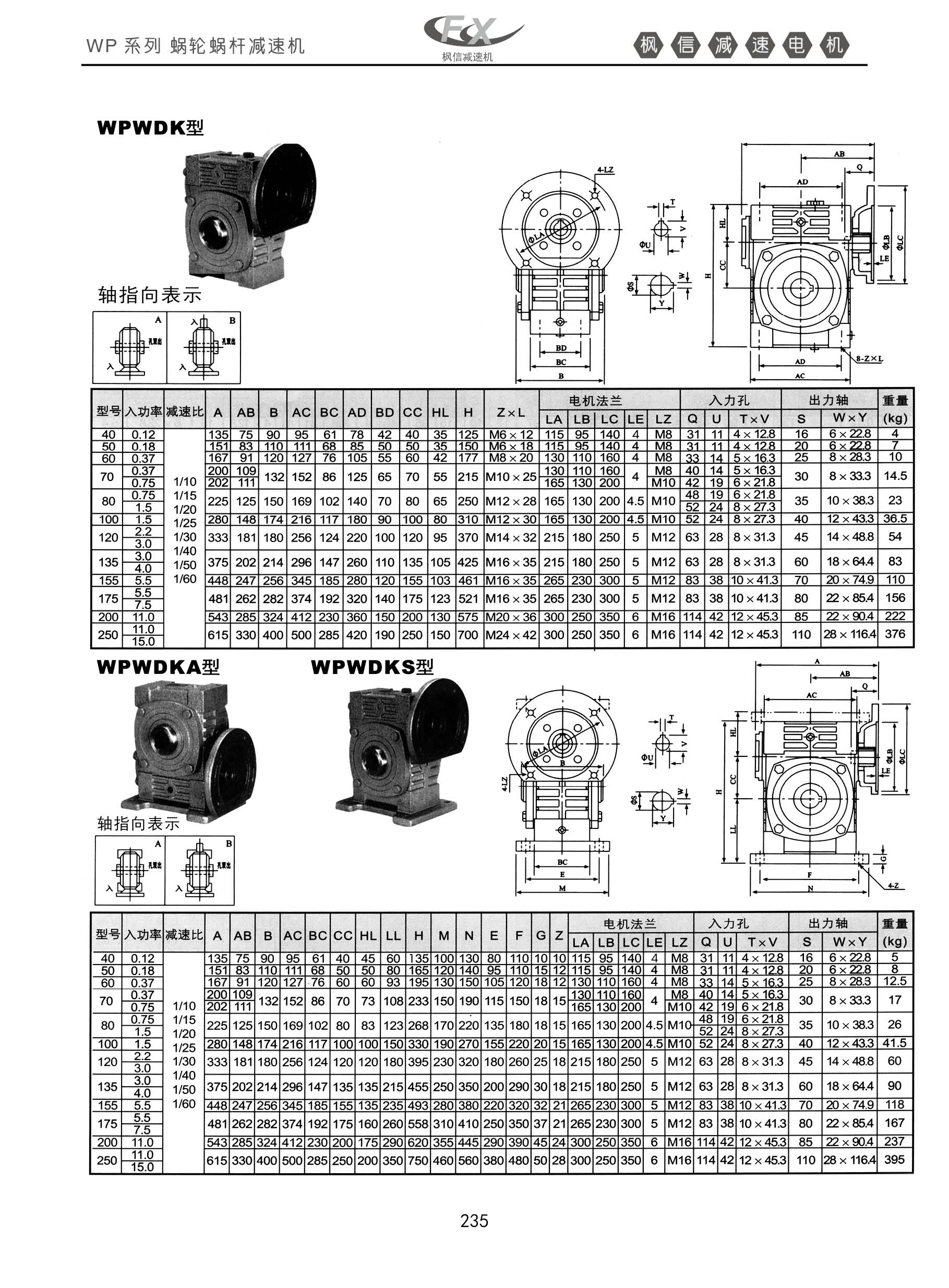 WP系列蜗轮蜗杆减速机。WPWDK型,WPWDKA型,轴指向表示