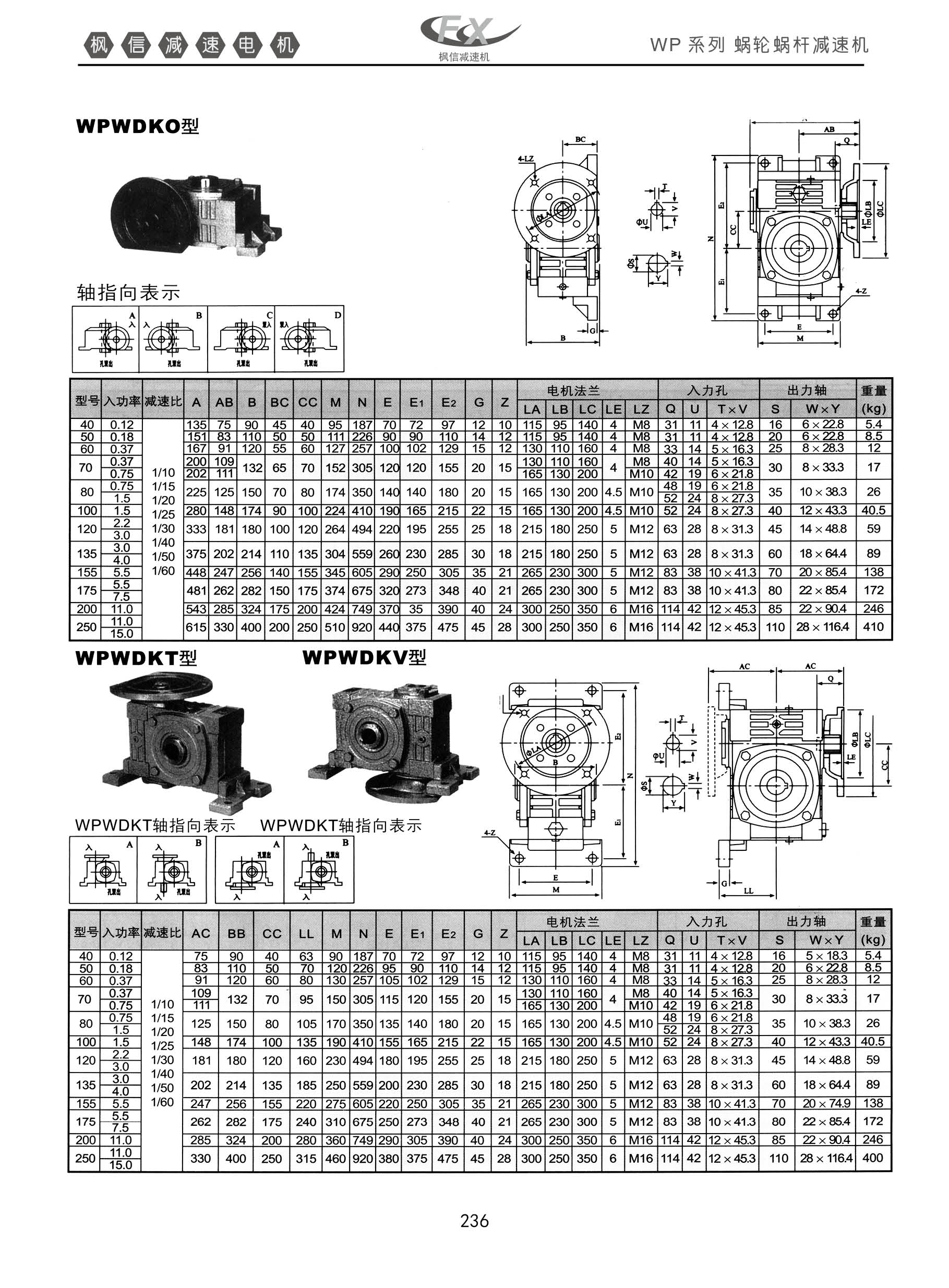 WP系列蜗轮蜗杆减速机。WPWDKO型,WPWDKT型,指向表示