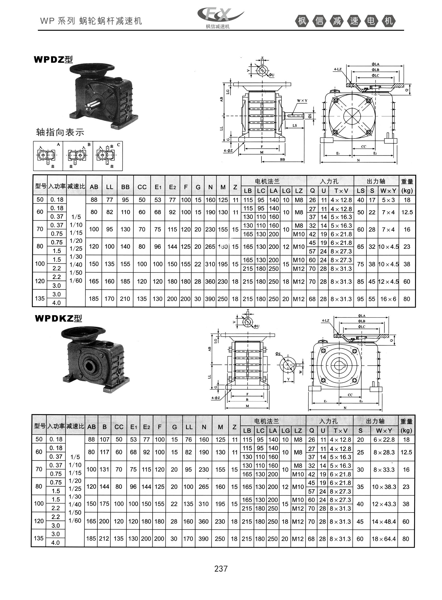 WP系列蜗轮蜗杆减速机。WPDZ型,WPDKZ型,轴指向表示