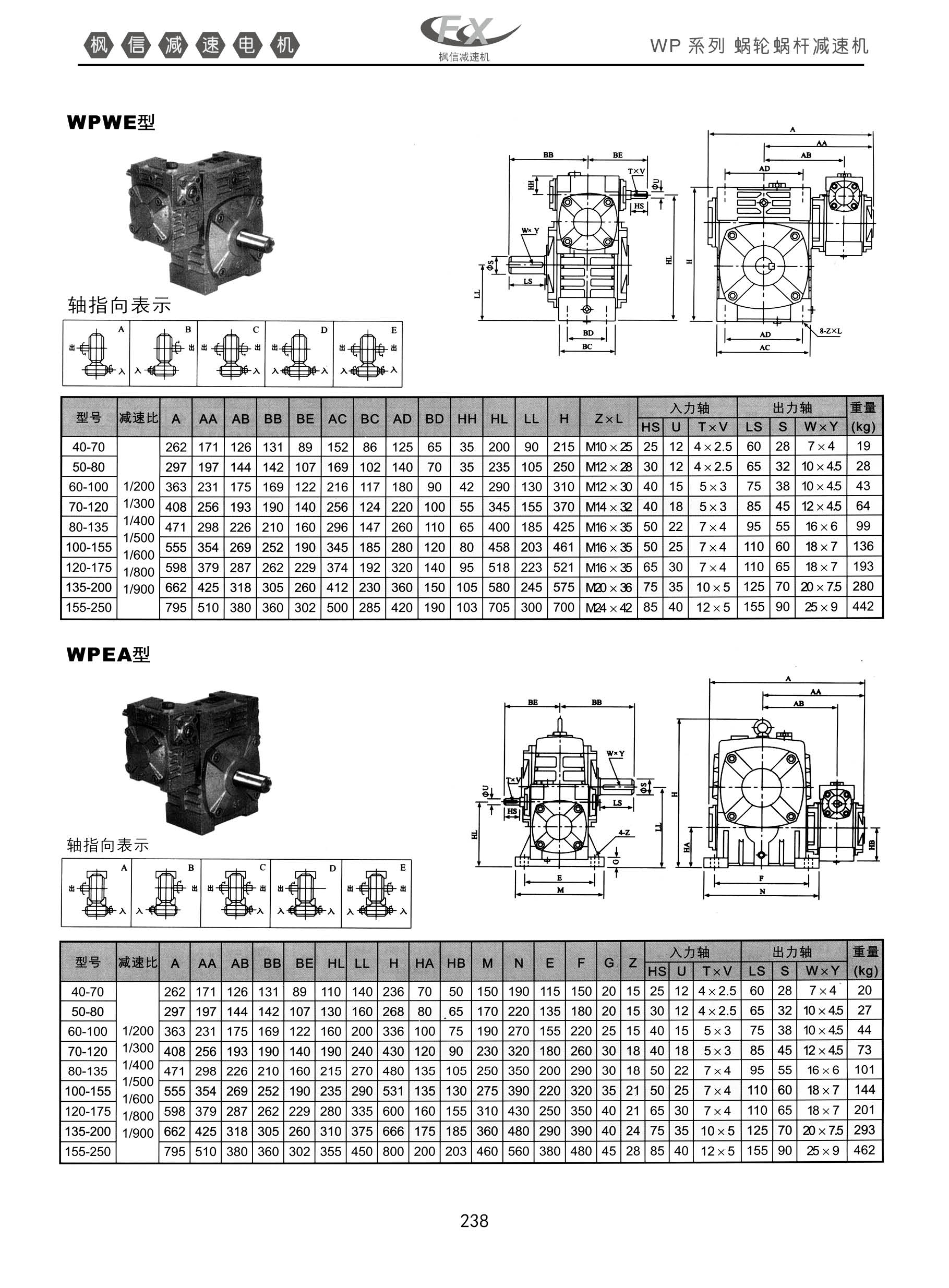 WP系列蜗轮蜗杆减速机。WPWE型,WPEA型,轴指向表示