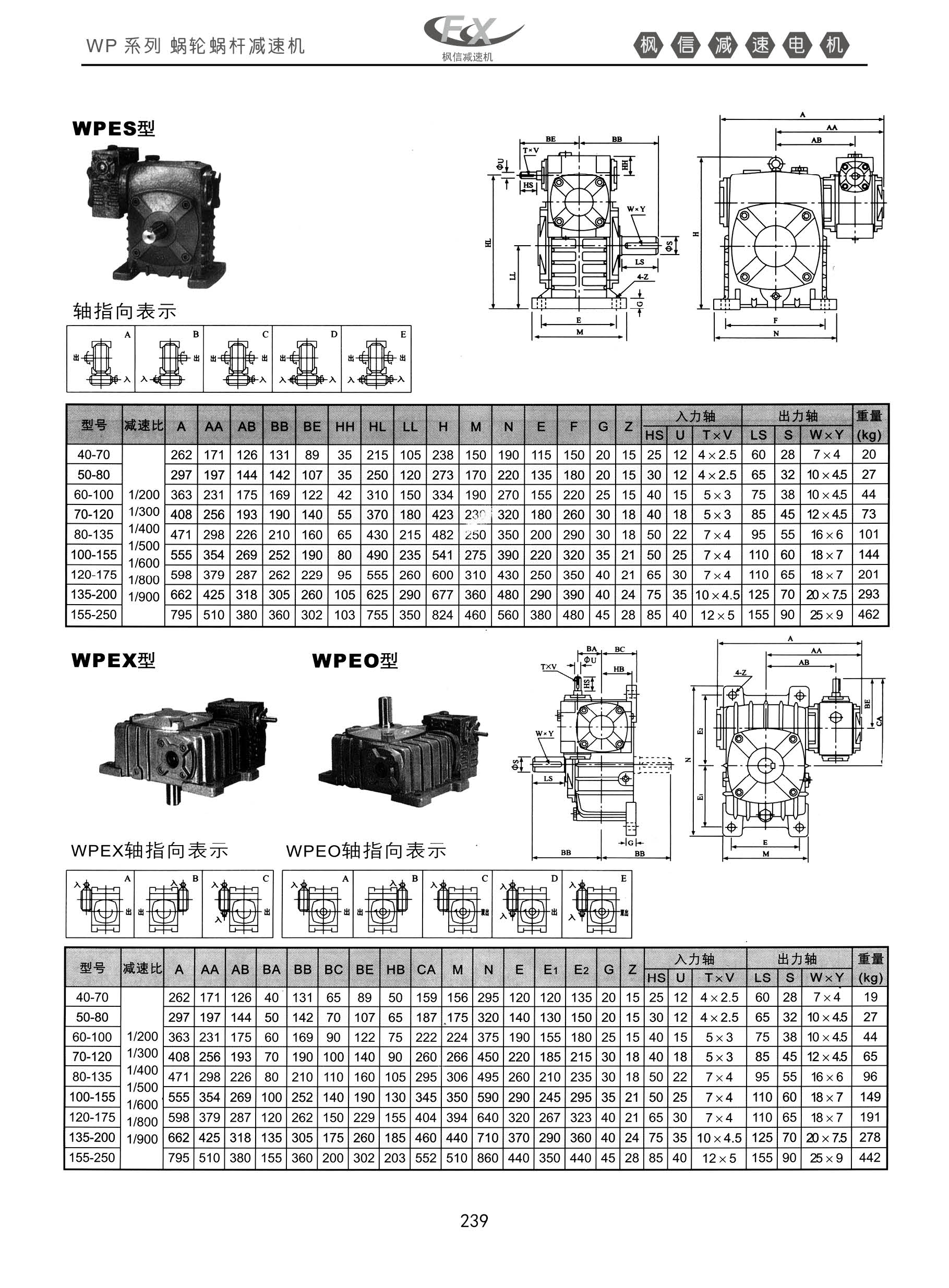 WP系列蜗轮蜗杆减速机,WPES型,WPEX型,轴指向表示