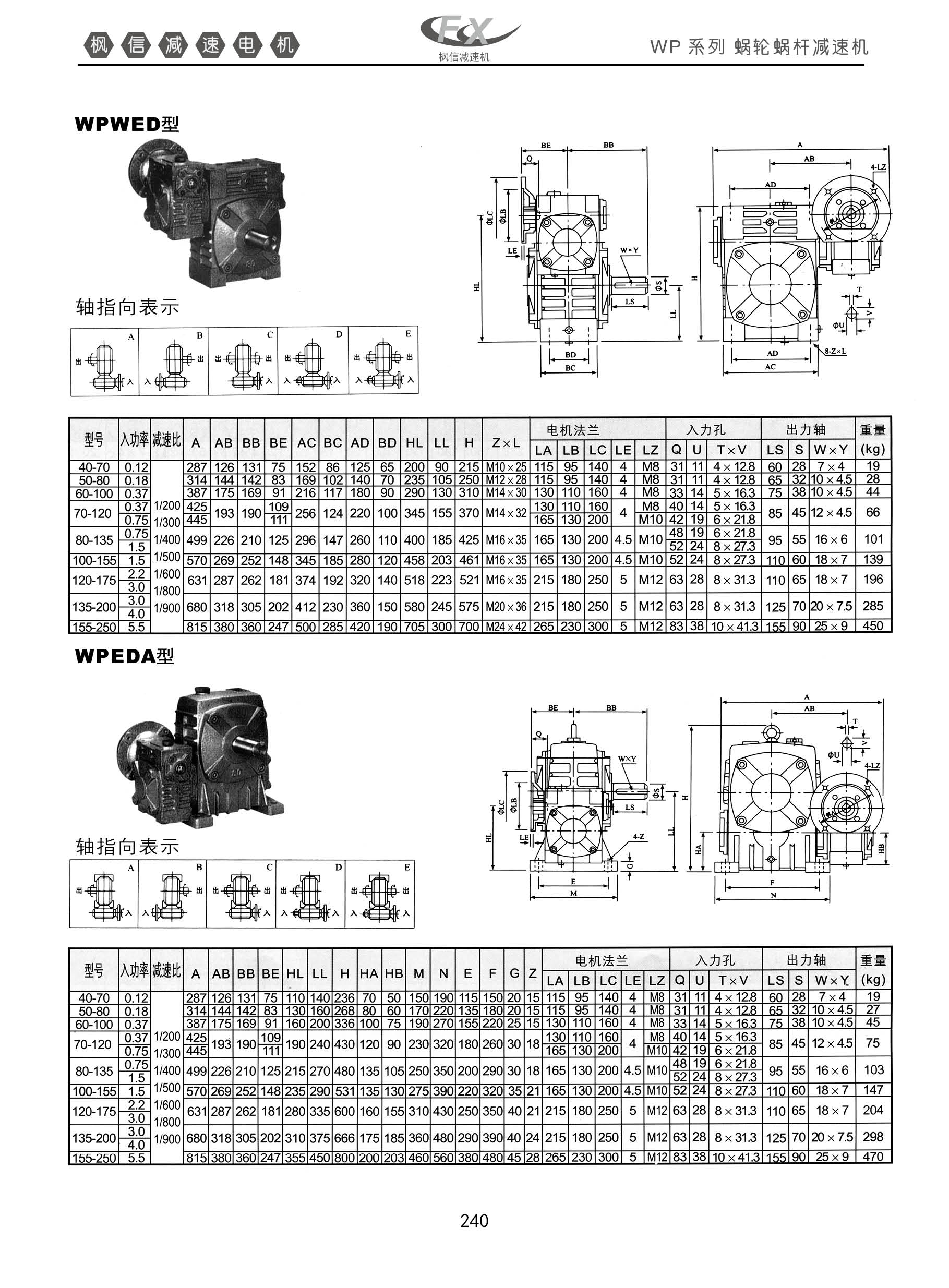 WP系列蜗轮蜗杆减速机。WPWED型,WPEDA型,轴指向表示