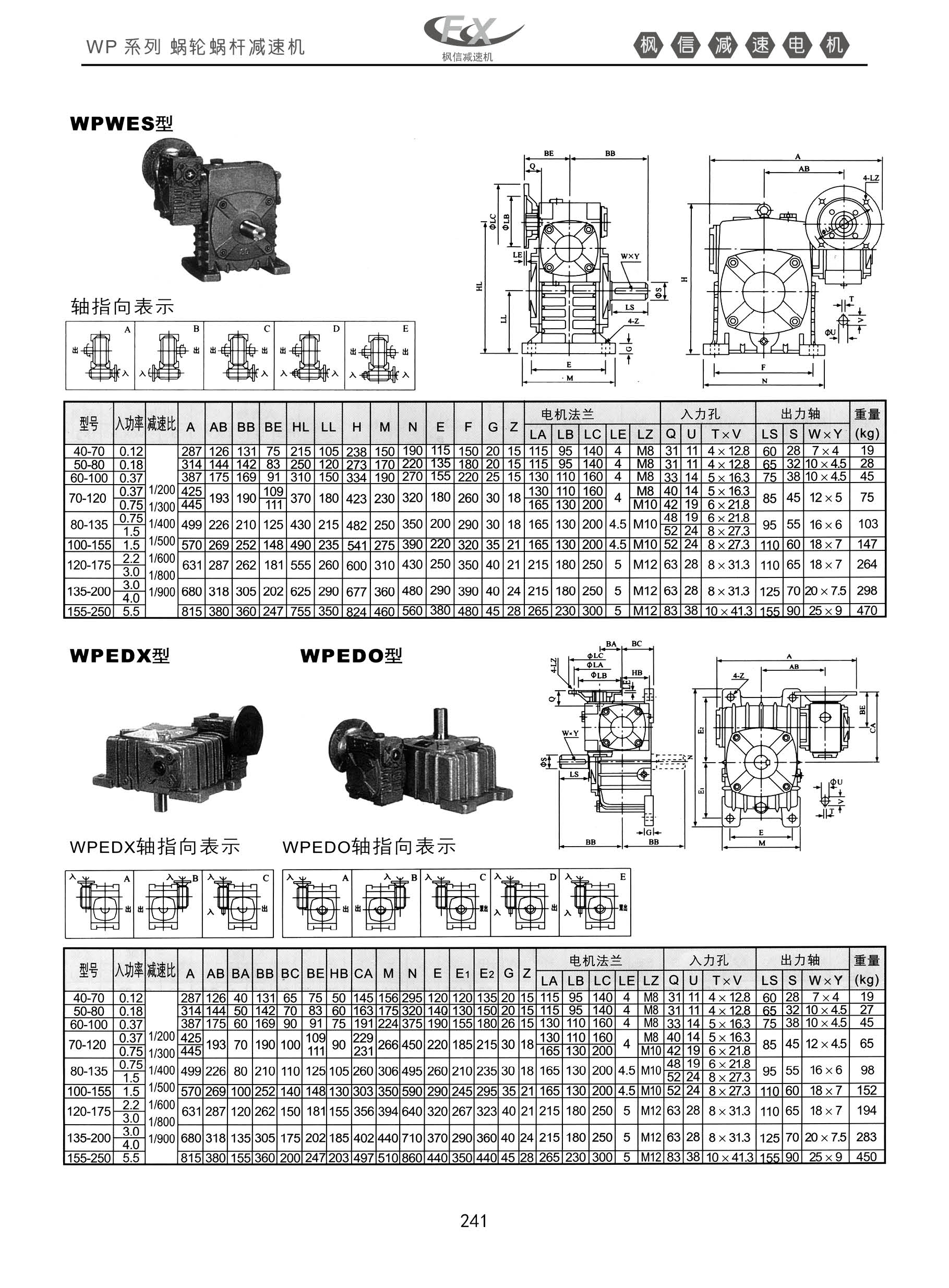 WP系列蜗轮蜗杆减速机。WPWES型,WPEDX型,轴指向表示图