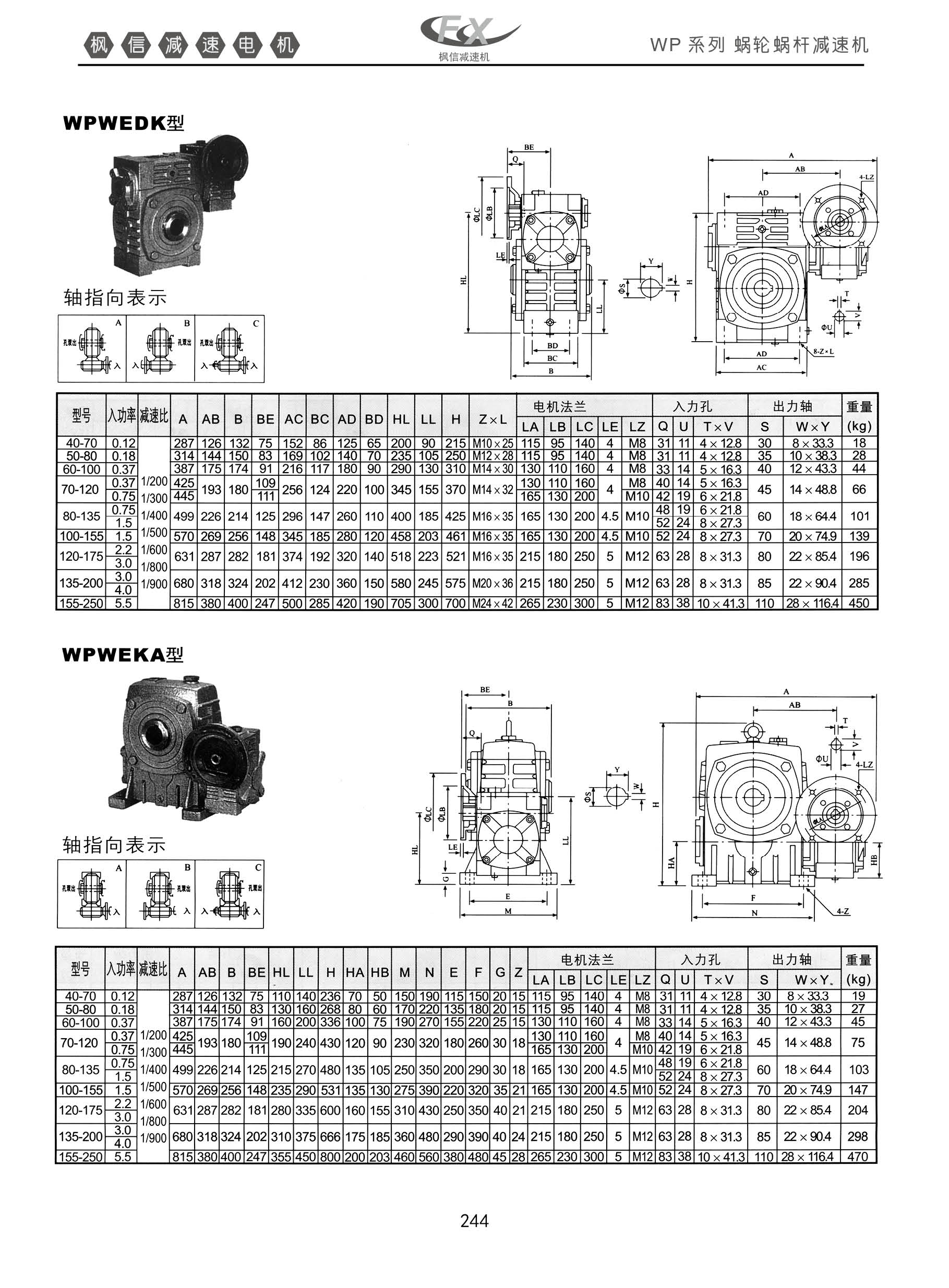 WP系列蜗轮蜗杆减速机。WPWEDK型,WPWEKA型,轴指向表示