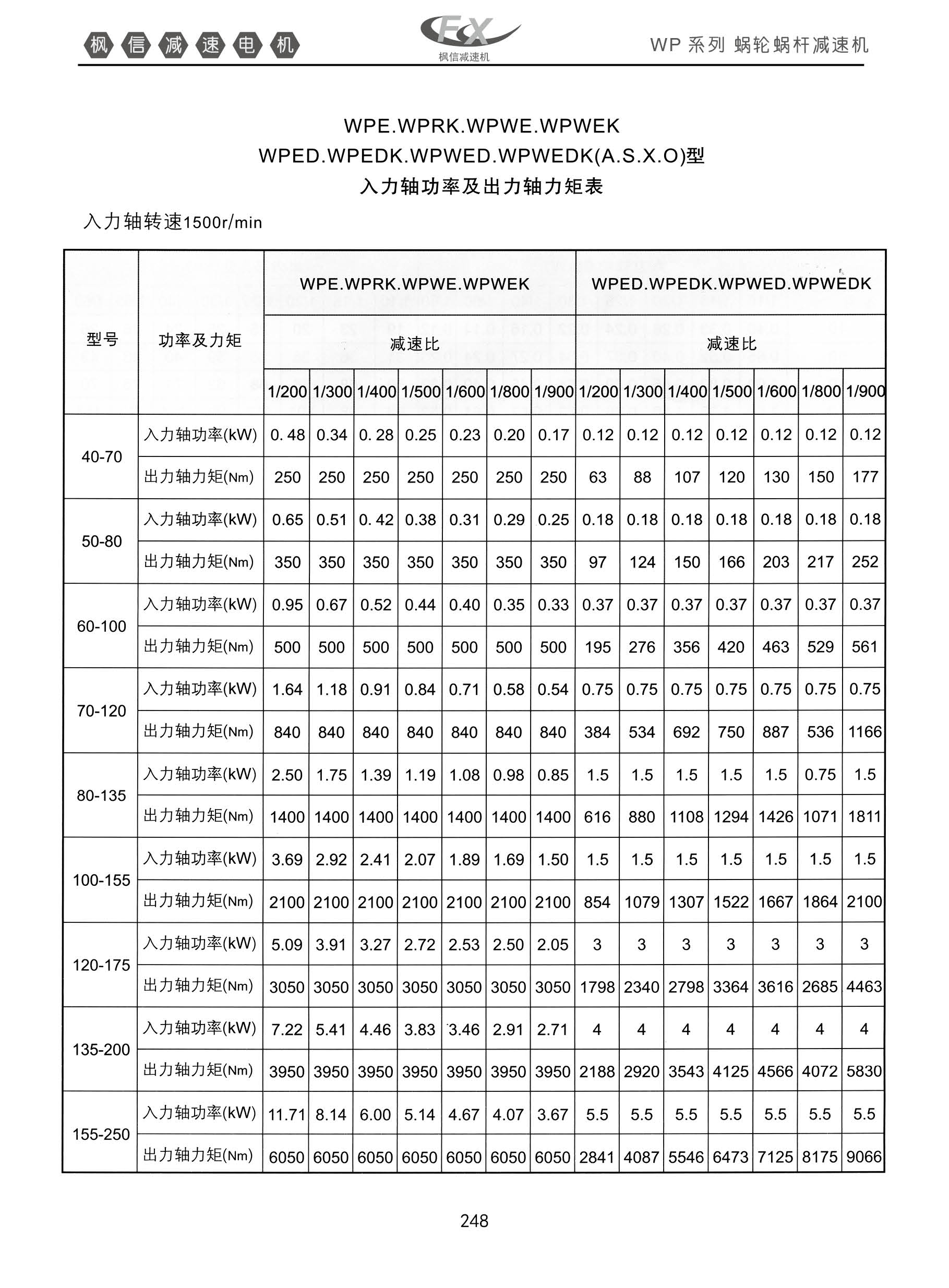 WP系列蜗轮蜗杆减速机。入力轴转速1500r/min