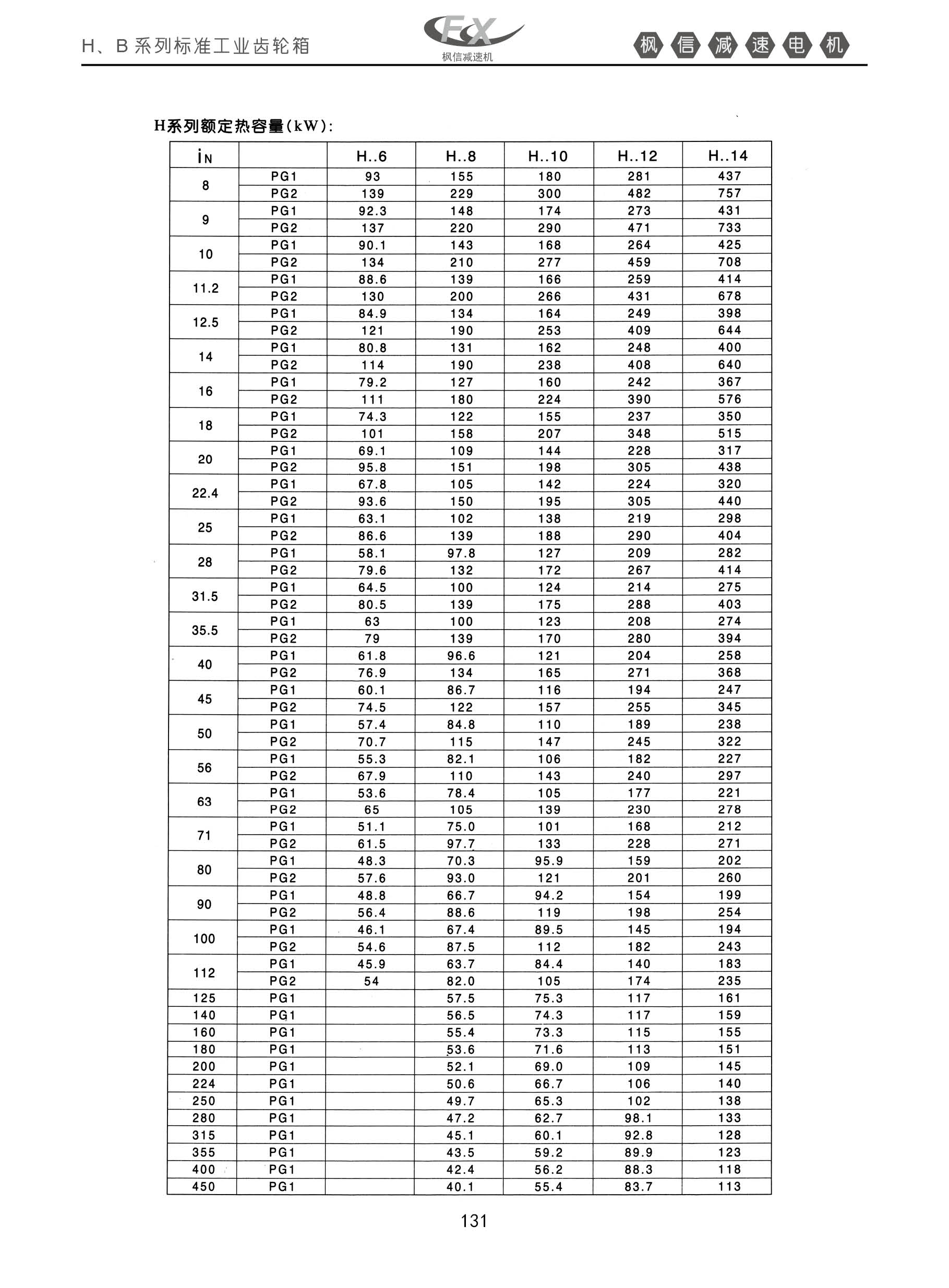 H,B系列标准工业齿轮箱。 H系列额定热容量【KW】。H型