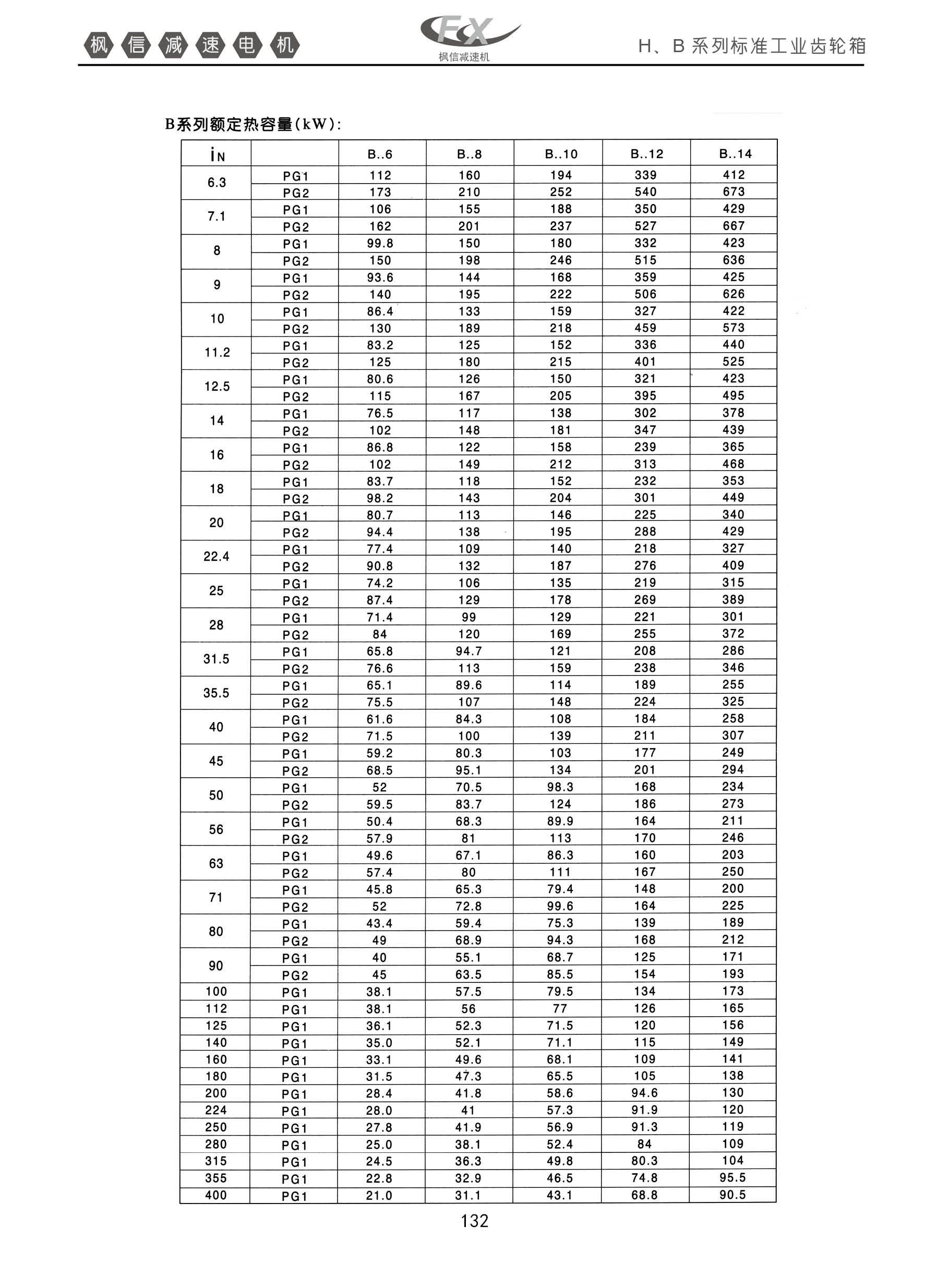 H,B系列标准工业齿轮箱。B系列额定热容量【KW】