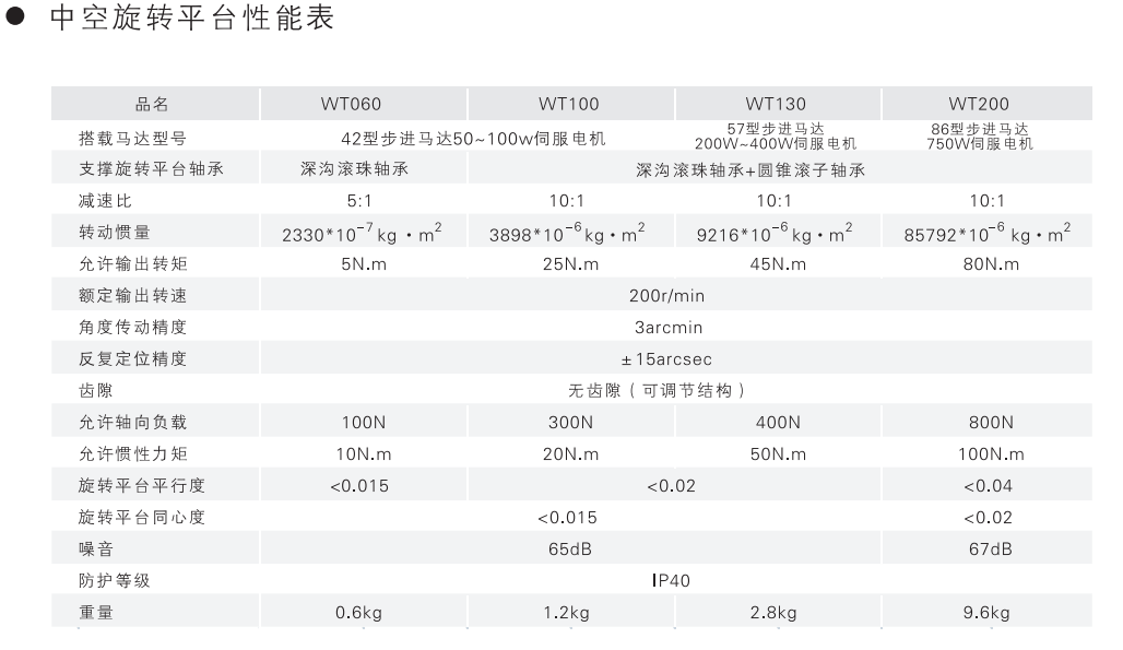 F X T 2 0 0 螺旋锥齿轮换向器中空旋转平台性能表。