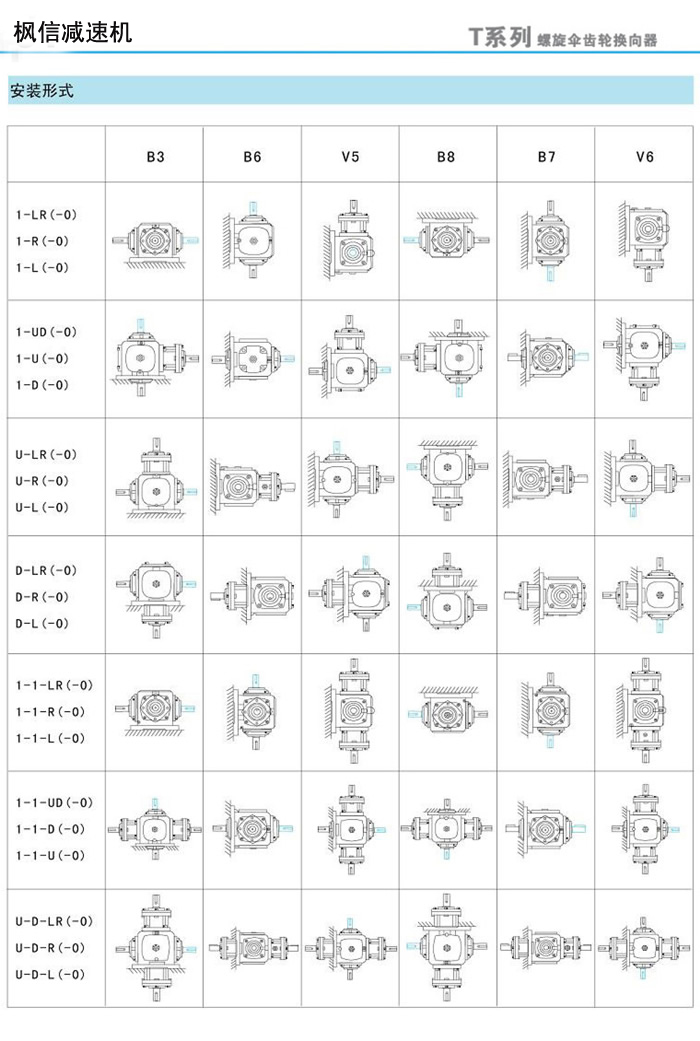 F X T 系列螺旋伞齿轮换向器,安装型式