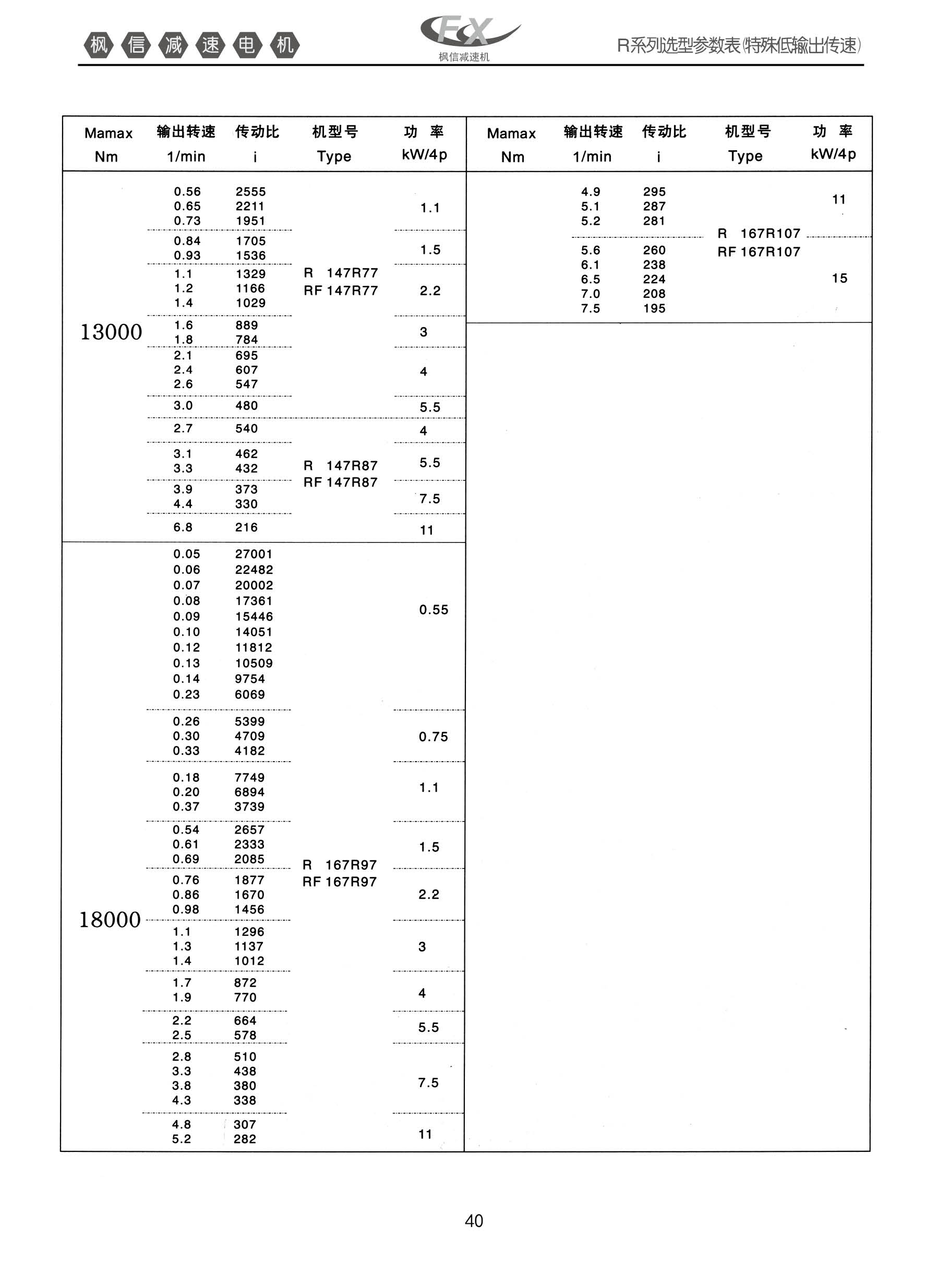 FXR系列斜齿轮硬齿面减速机。R系列选型参数表【特殊底输出传速】