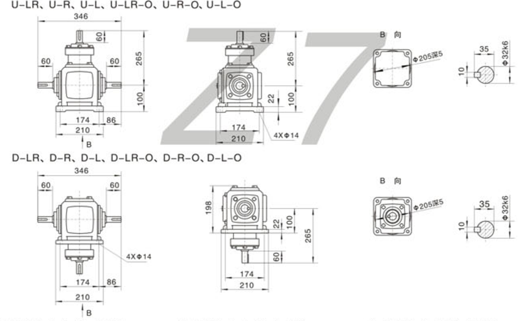 FXZ7系列螺旋锥齿轮外形安装尺寸图