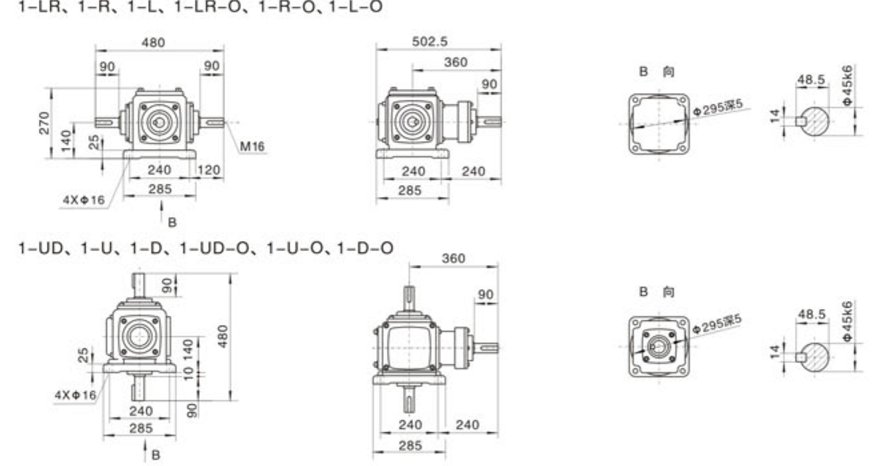 FXZ10系列螺旋锥齿轮外形安装尺寸图