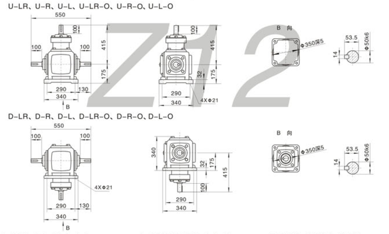 FXZ12系列螺旋锥齿轮外形安装尺寸图