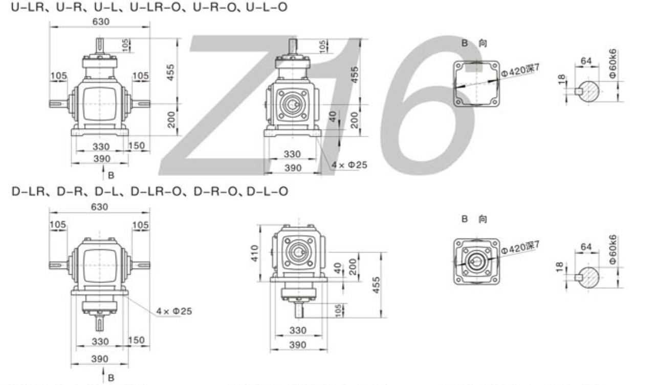 FXZ16系列螺旋锥齿轮外形安装尺寸图