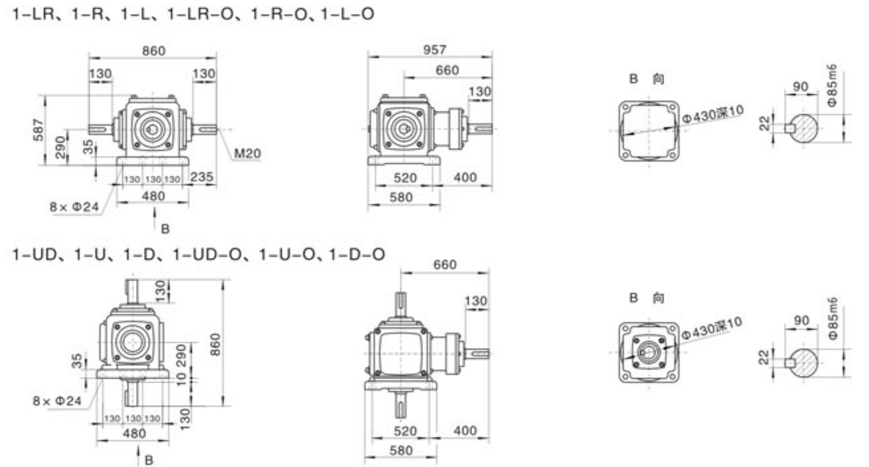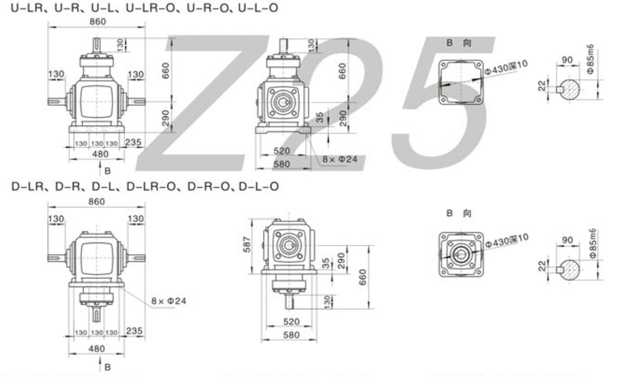 FXZ25系列螺旋锥齿轮外形安装尺寸图