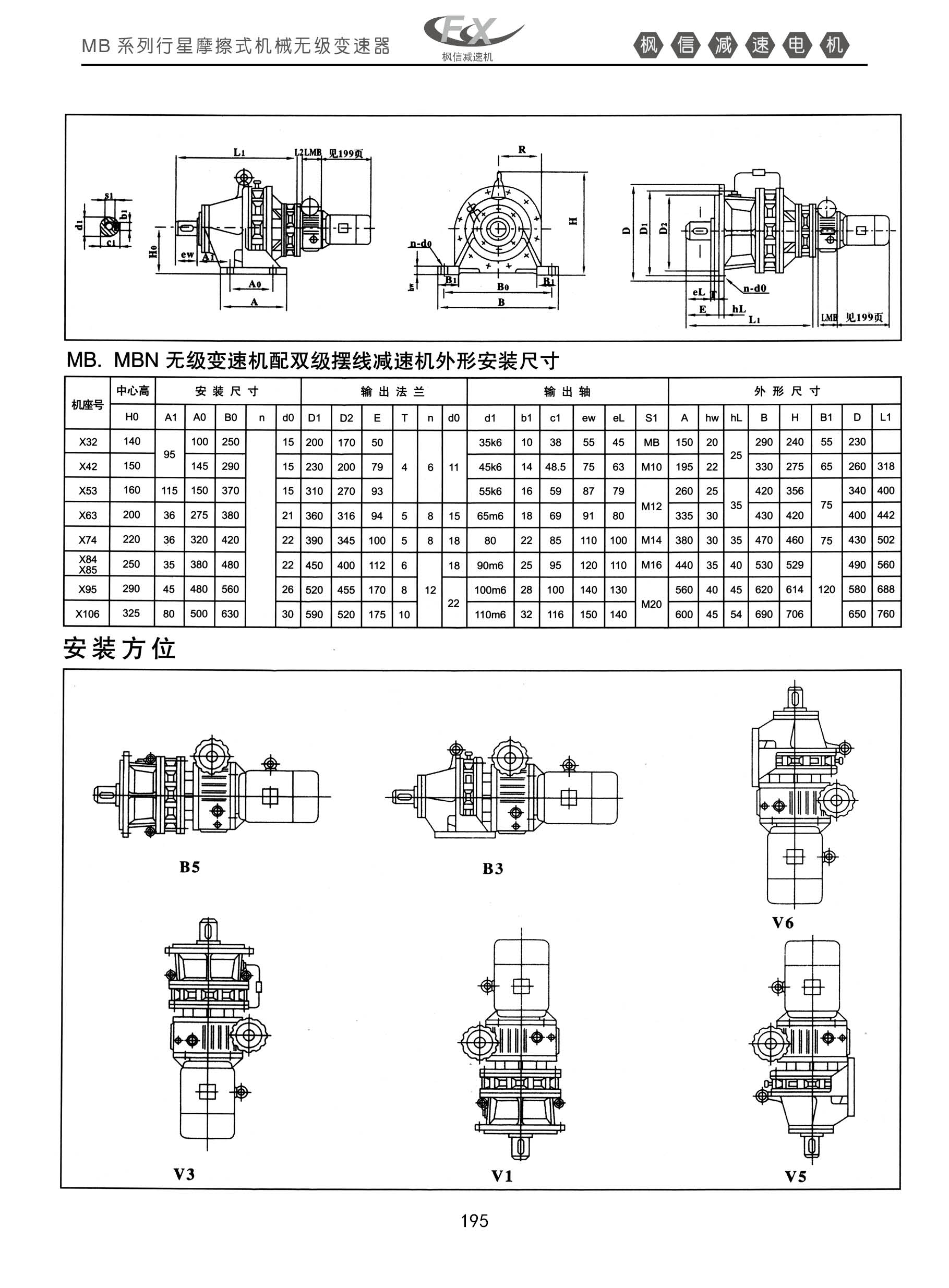 MB无级变速机配单双级摆线减速机外型安装尺寸图