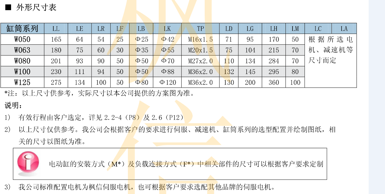 FX直线式伺服电动缸的外形尺寸