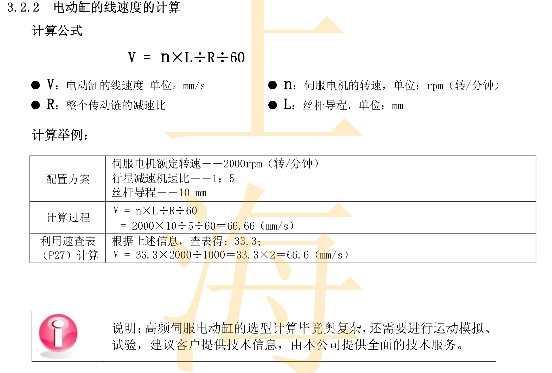 FX直线式伺服电动缸的线速度的计算