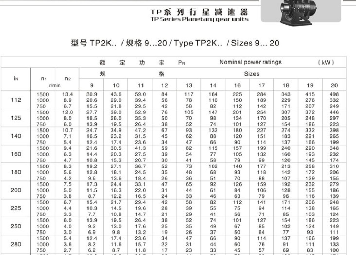 FXTP型号 TP2K.. /规格 9...20 / Type TP2K.. / Sizes 9...20 系列大功率行星齿轮减速机