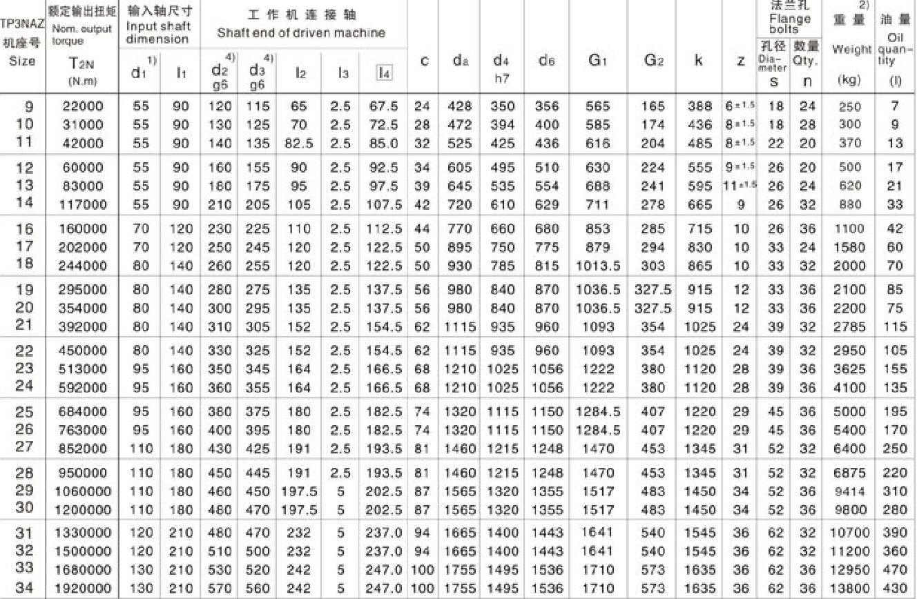 FXTP型号TP3NAZ /规格 9...36 / Type TP3NAZ /Sizes 9...36 系列大功率行星齿轮减速机