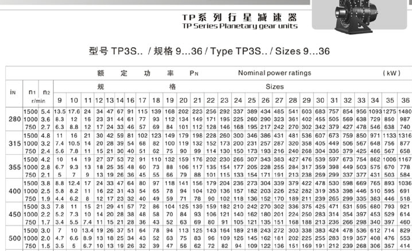 FXTP型号 TP3S.. / 规格 9...36 / Type TP3S .. /Sizes 9...36 系列大功率行星齿轮减速机