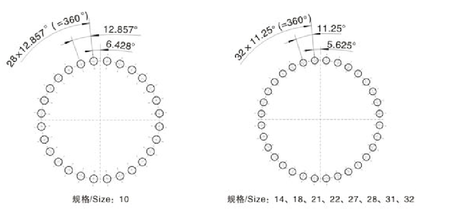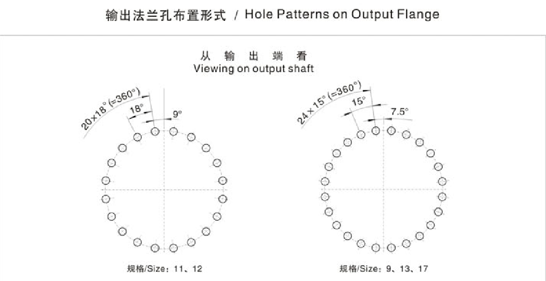 FXTP输出法兰孔布置形式 / Hole Patterns on Output Flange 从 输 出 端 看 Viewing on output shaft 系列大功率行星齿轮减速机