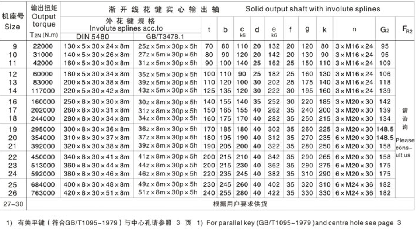 FXTP规格 9....30 / 渐开线花键实心输出轴 / Sizes 9..30 /Solid Output Shaft with lnvolute Splines系列大功率行星齿轮减速机
