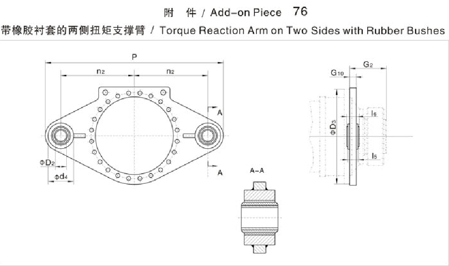 FXTP附 件 /Add-on Piece 76带橡胶衬套的两侧扭矩支撑臂 / Torque Reaction Arm on Two Sides with Rubber Bushes系列大功率行星齿轮减速机
