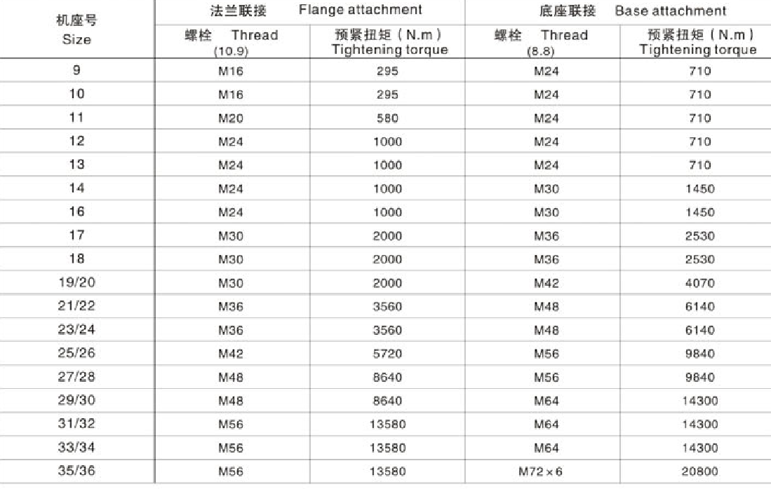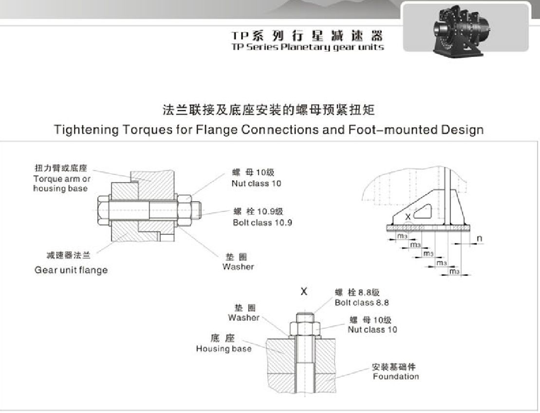 FXTP法兰联接及底座安装的螺母预紧扭矩 Tightening Torques for Flange connections and Foot-mounted design系列大功率行星齿轮减速机