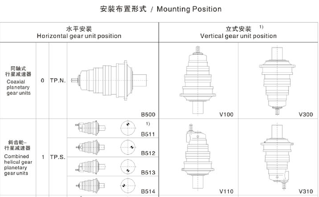FXTP安装布置形式 /Mountig Position 系列大功率行星齿轮减速机