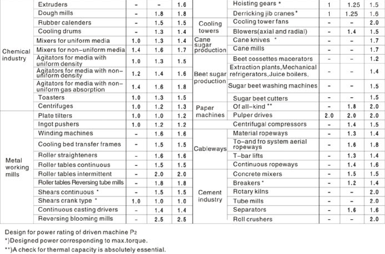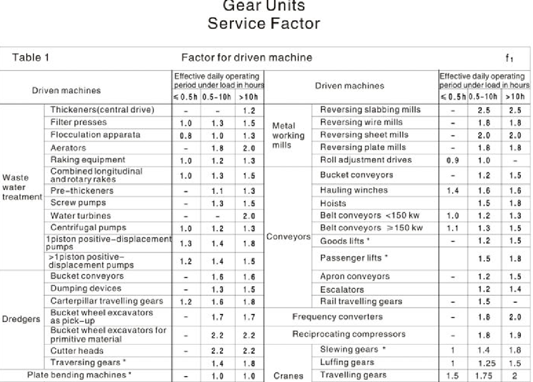 FXHB减速器服务系数Gear Units Service Factor