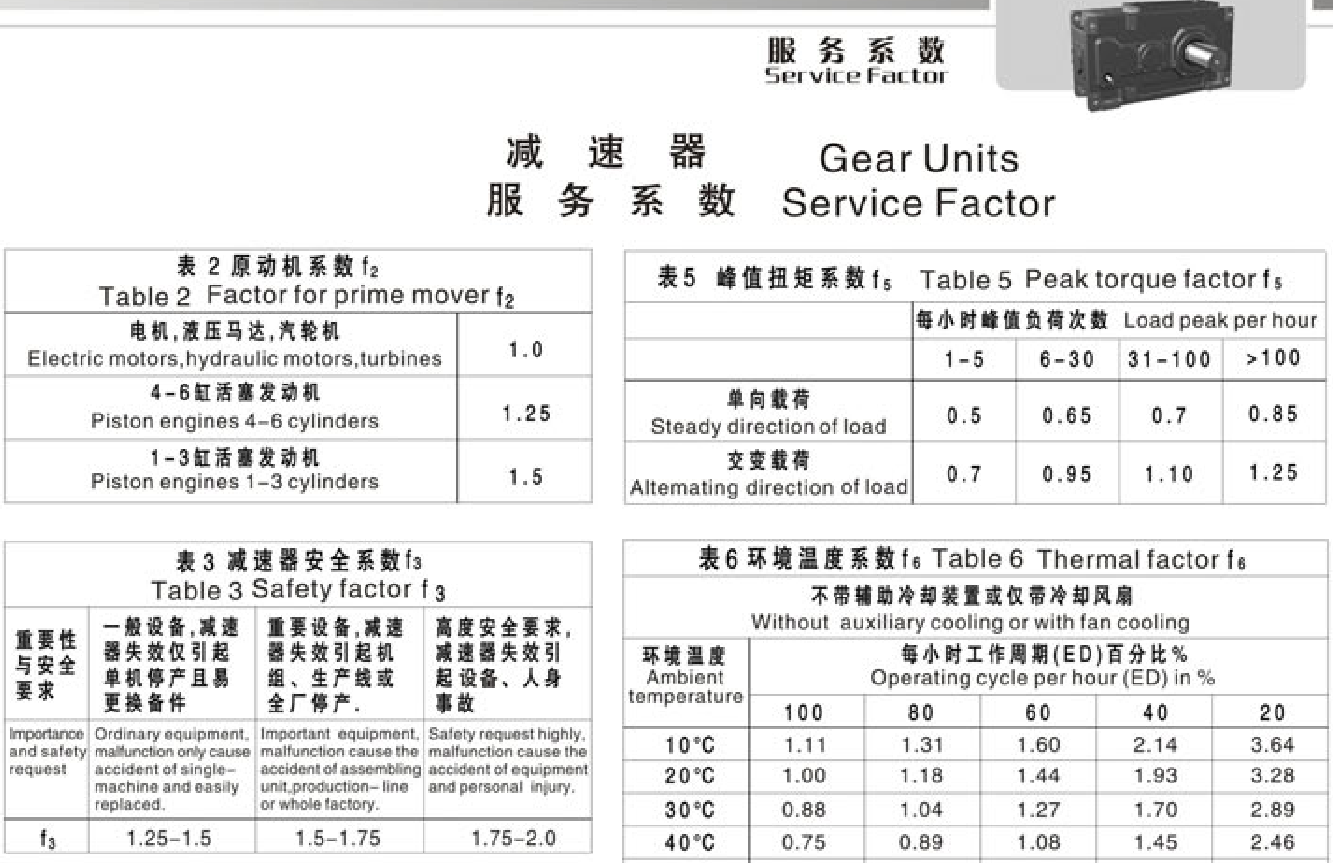 FXHB减速器 Gear Units 服务系数 Service Factor