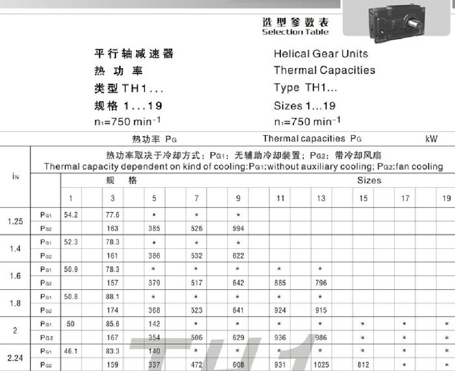 FXHB选型参数表 Selection Table系列大功率功率工业齿轮箱