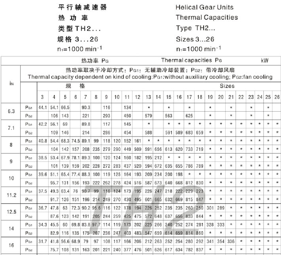 FXHB平行轴减速器 Helical Gear Units 热功率Thermal Capacities 类型Type TH2...规格 3...26 Sizes 3...26系列大功率工业齿轮箱