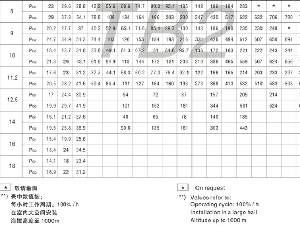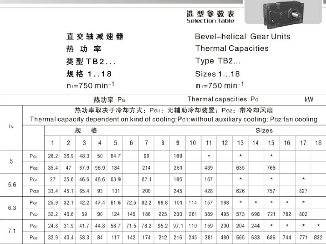 FXHB直交轴减速器 Bevel-helical Gear Units 热功率 Thermal Capacities 类型 TB2 Type TB2...规格 1... 18系列大功率工业齿箱