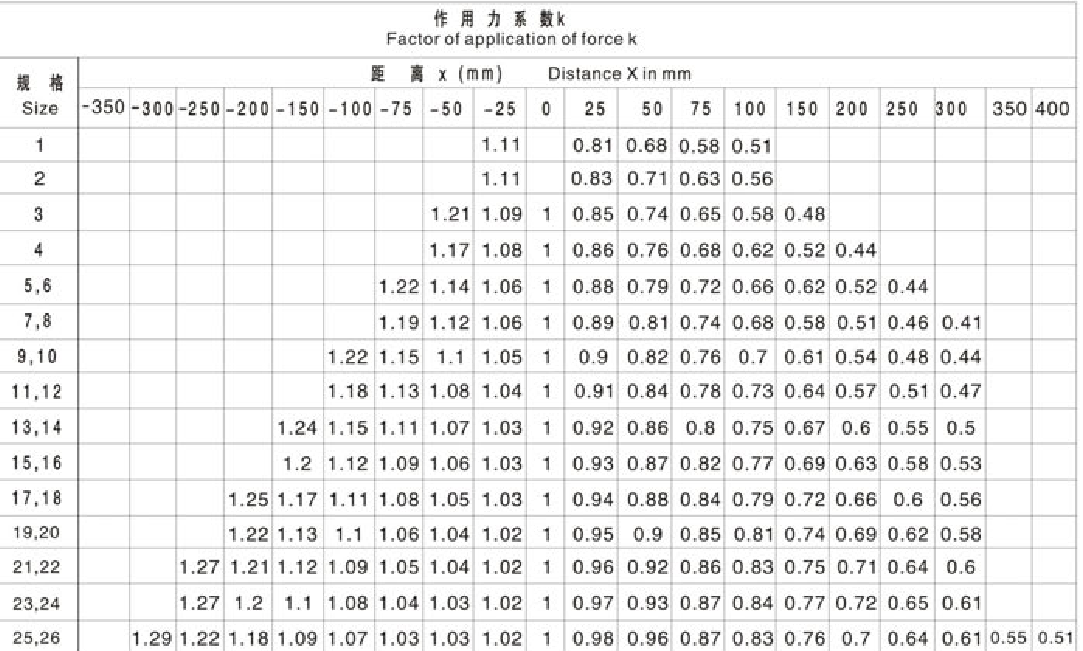 FXHB选型参数表 Selectio Table 作用力系数K Factor of application of force K系列大功率工业齿轮箱