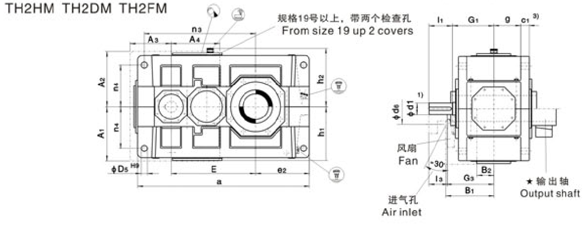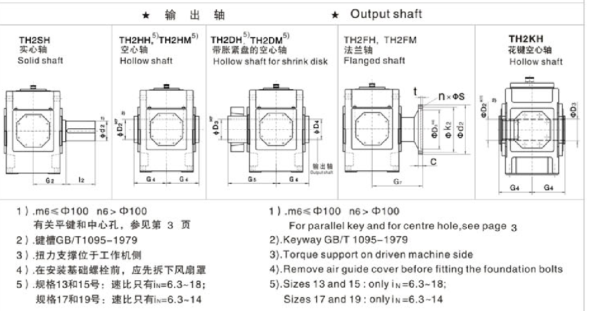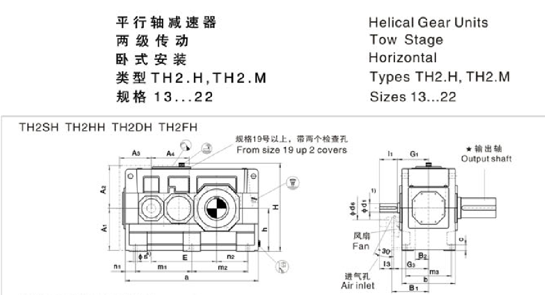 FXHB类型 TH2 . H,TH2.M Types TH2.H TH2.M 规格13...22 Sizes 13...22系列大功率工业齿轮箱