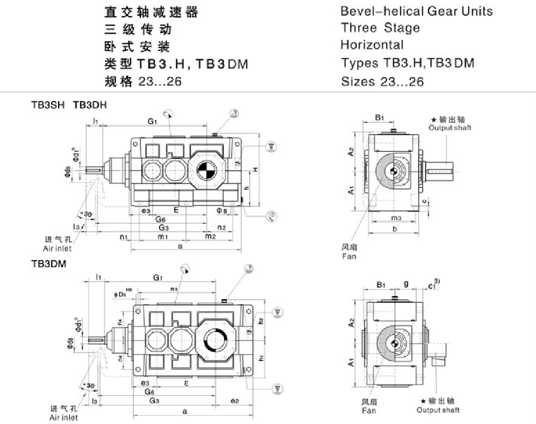 FXHB类型TB3.H,TB3DM ,Types tb3.h,TB3DM系列大功率工业齿轮箱