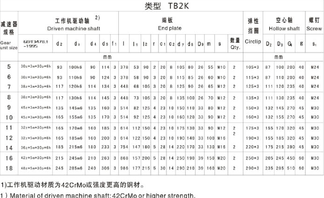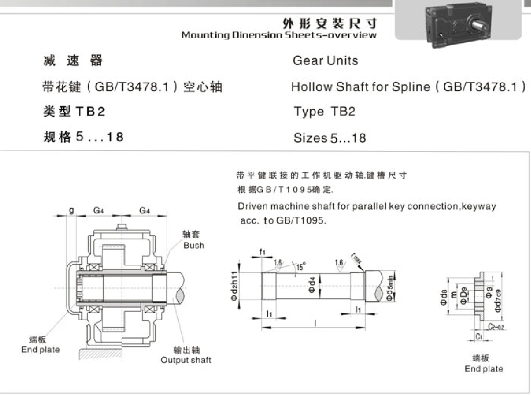 FXHB类型 TB2 Type TB2 带花键【GB/T3478.1】空心轴 Hollow Shaft for Spline [GB/T3478.1]系列大功率工业齿轮箱